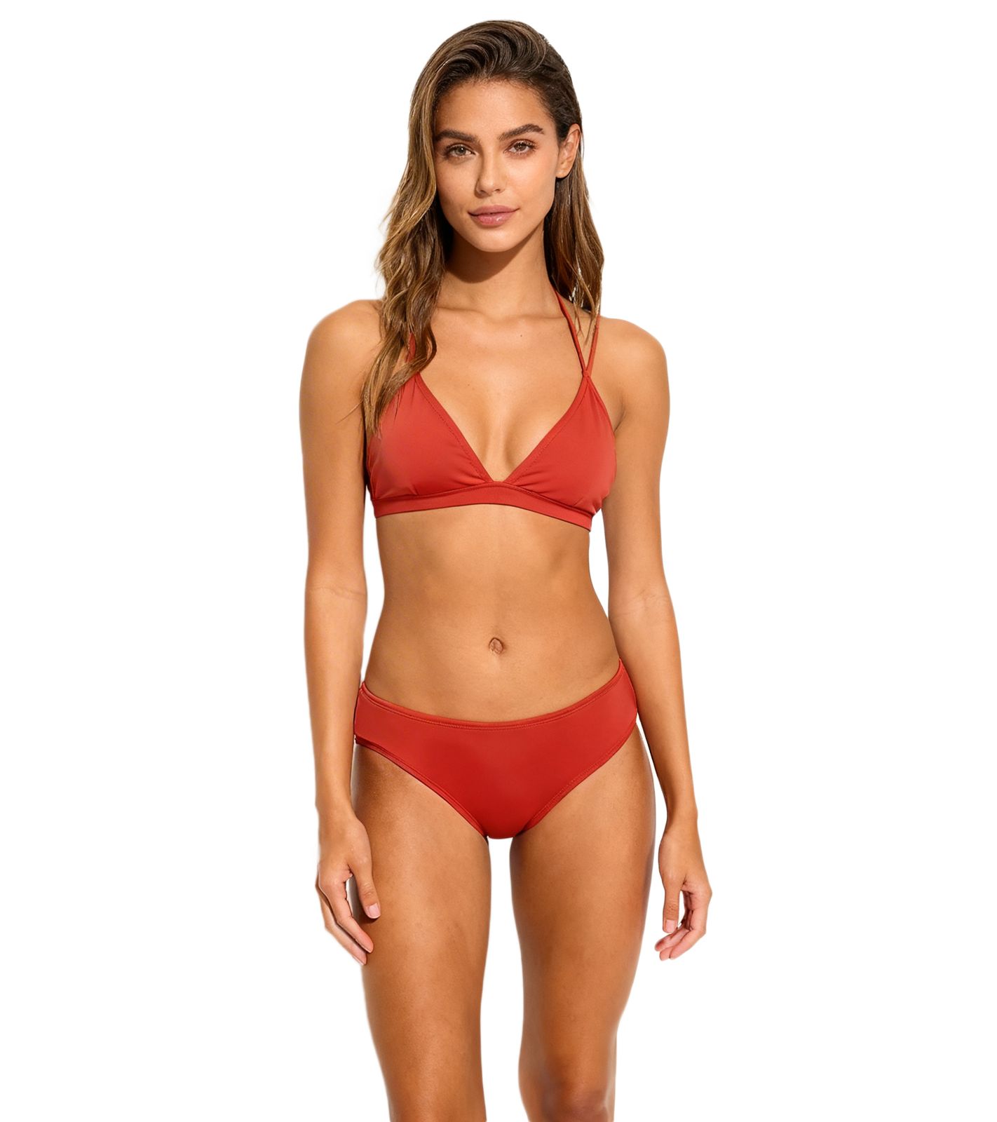 schlichte Damen Bikini Hose Bikini-Slip mit normalem Beinausschnitt Bademode 976280 Rostbraun