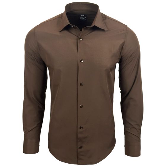 Schlichtes Langarm-Hemd für Herren Business-Hemd im Basic-Style Freizeit-Hemd 55 Braun