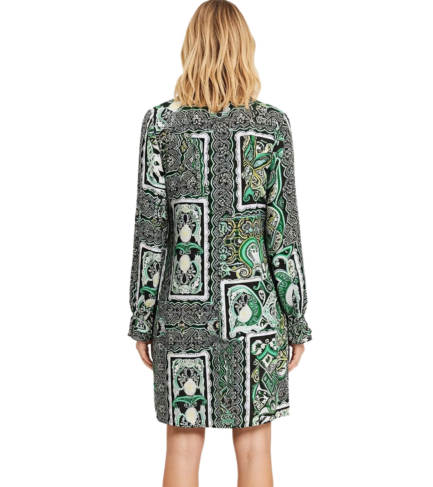 sommerliches Damen Mini-Kleid Wickel-Kleid mit Paisley-Muster 942167 Schwarz/Grün/Weiß