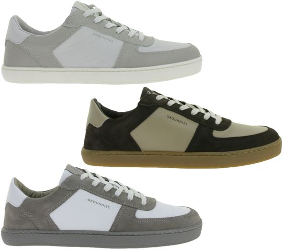 sportliche GROUNDIES Barfußschuhe Hamptons 2.0 Herren Low-Top Echtleder Sneaker mit TrueSense Sohle Schnür-Schuhe GND-210256 Braun, Grau oder Weiß