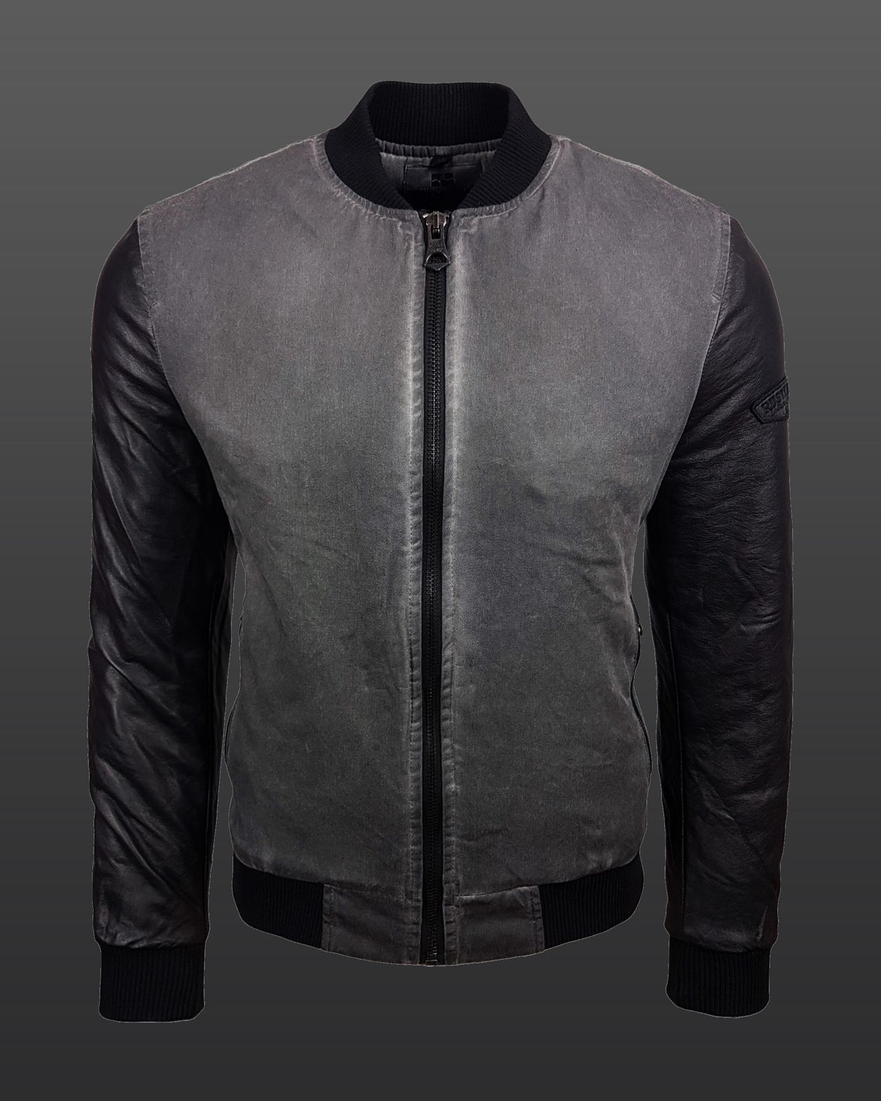- Lässige Herren Jacke im klassischen College Stil mit moderner Ausstrahlung. Markanter Materialmix aus Stoffjacke und Ärmeln in Lederoptik