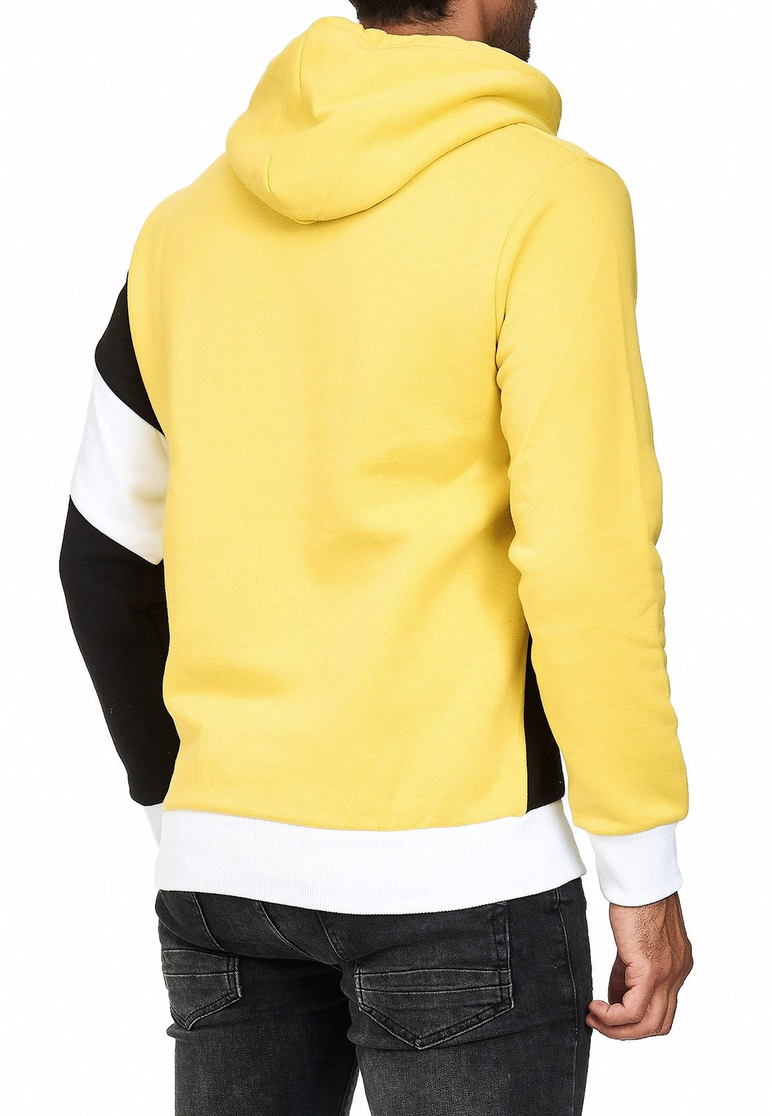 Sportlicher Hoodie für Herren im Color-Blocking-Style Kapuzen-Pullover Sweater 4727 Gelb/Schwarz/Weiß