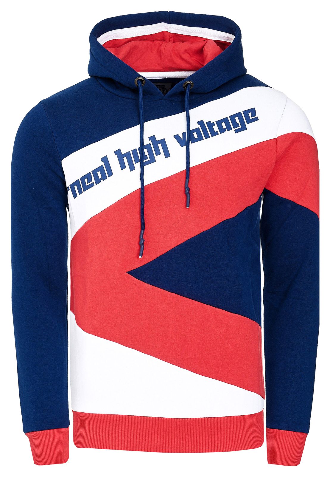 Sportlicher Hoodie für Herren im Color-Blocking-Style Kapuzen-Pullover Sweater 4727 Navy/Weiß/Rot