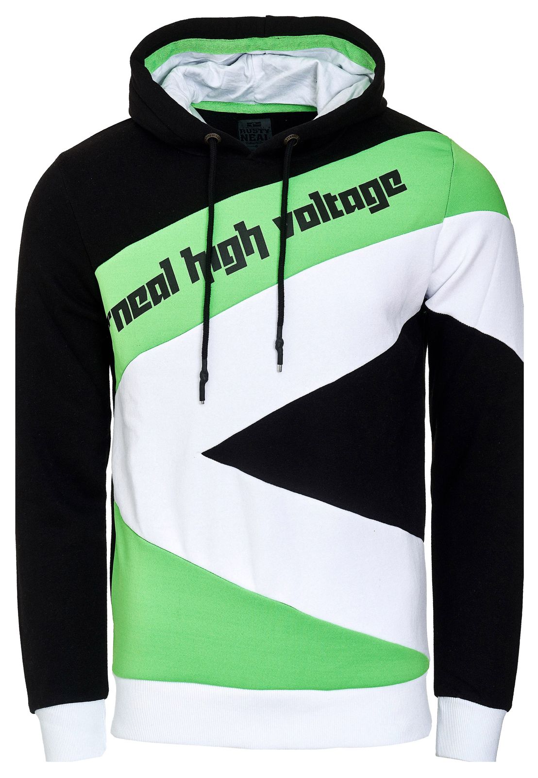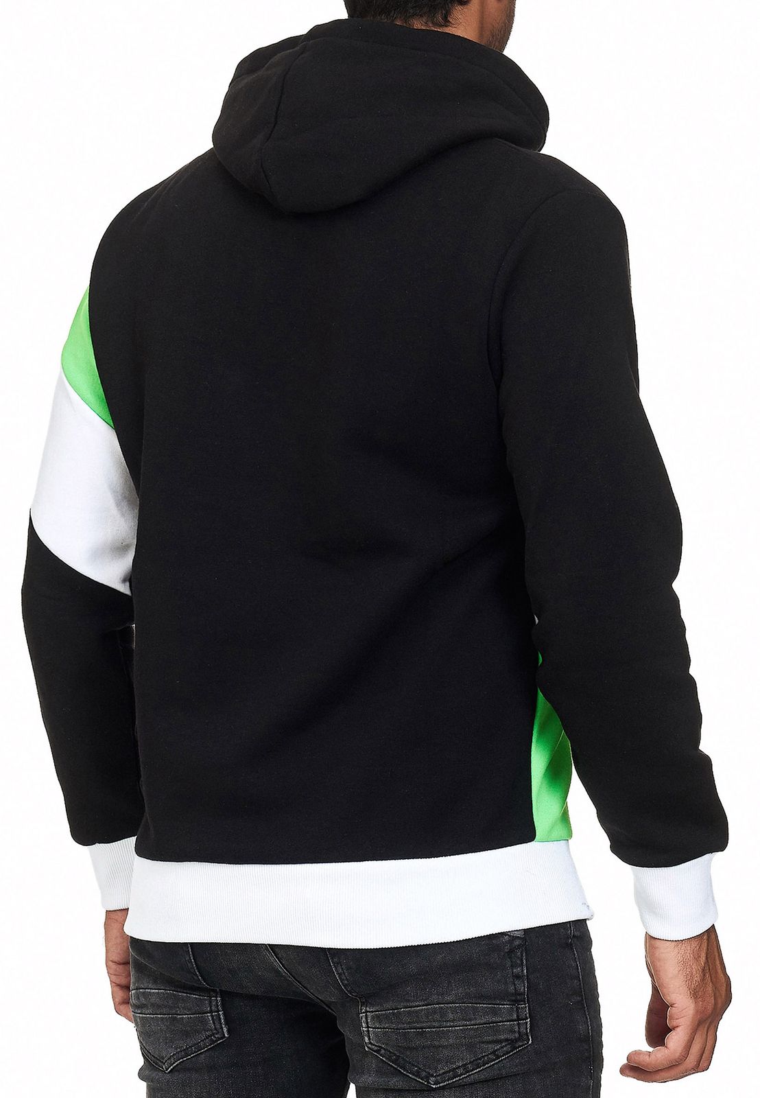 Sportlicher Hoodie für Herren im Color-Blocking-Style Kapuzen-Pullover Sweater 4727 Schwarz/Neon Grün/Weiß
