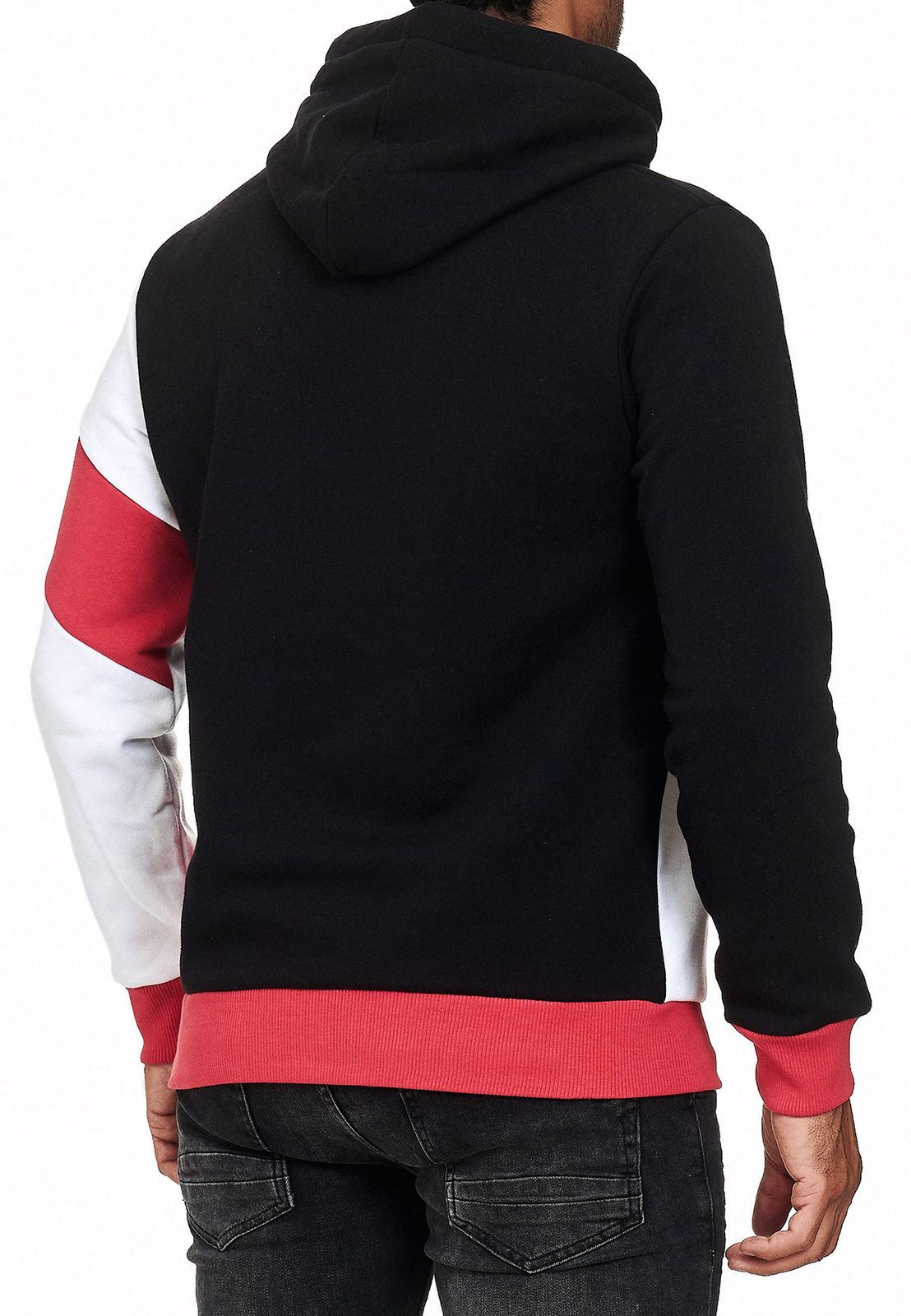 Sportlicher Hoodie für Herren im Color-Blocking-Style Kapuzen-Pullover Sweater 4727 Schwarz/Weiß/Rot