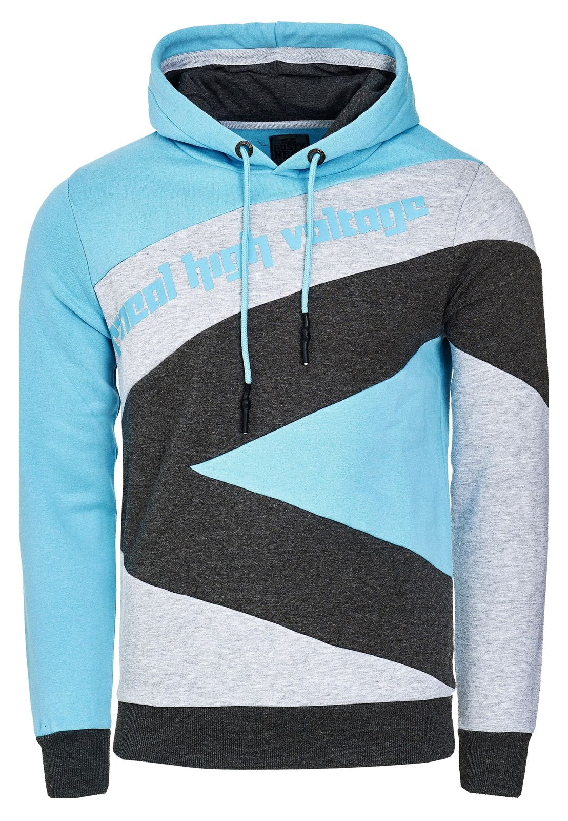 Sportlicher Hoodie für Herren im Color-Blocking-Style Kapuzen-Pullover Sweater 4727 Türkis/Grau Melange/Anthrazit