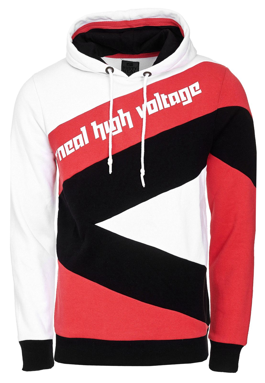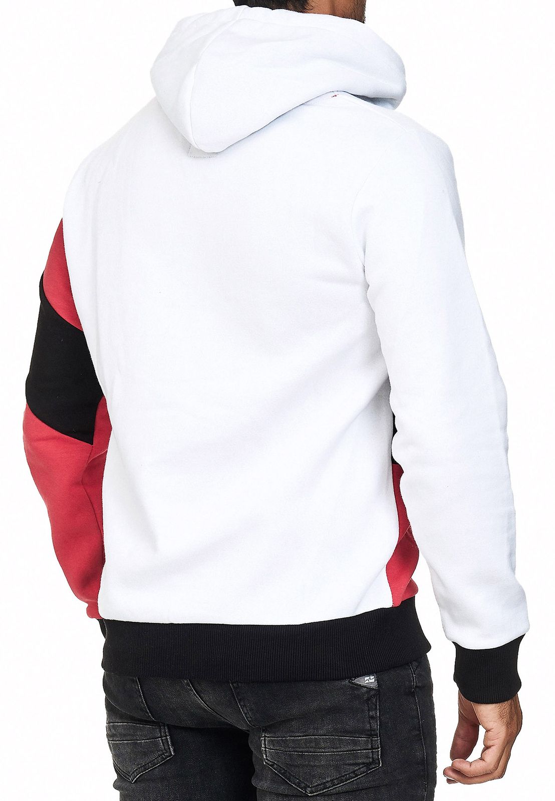 Sportlicher Hoodie für Herren im Color-Blocking-Style Kapuzen-Pullover Sweater 4727 Weiß/Rot/Schwarz