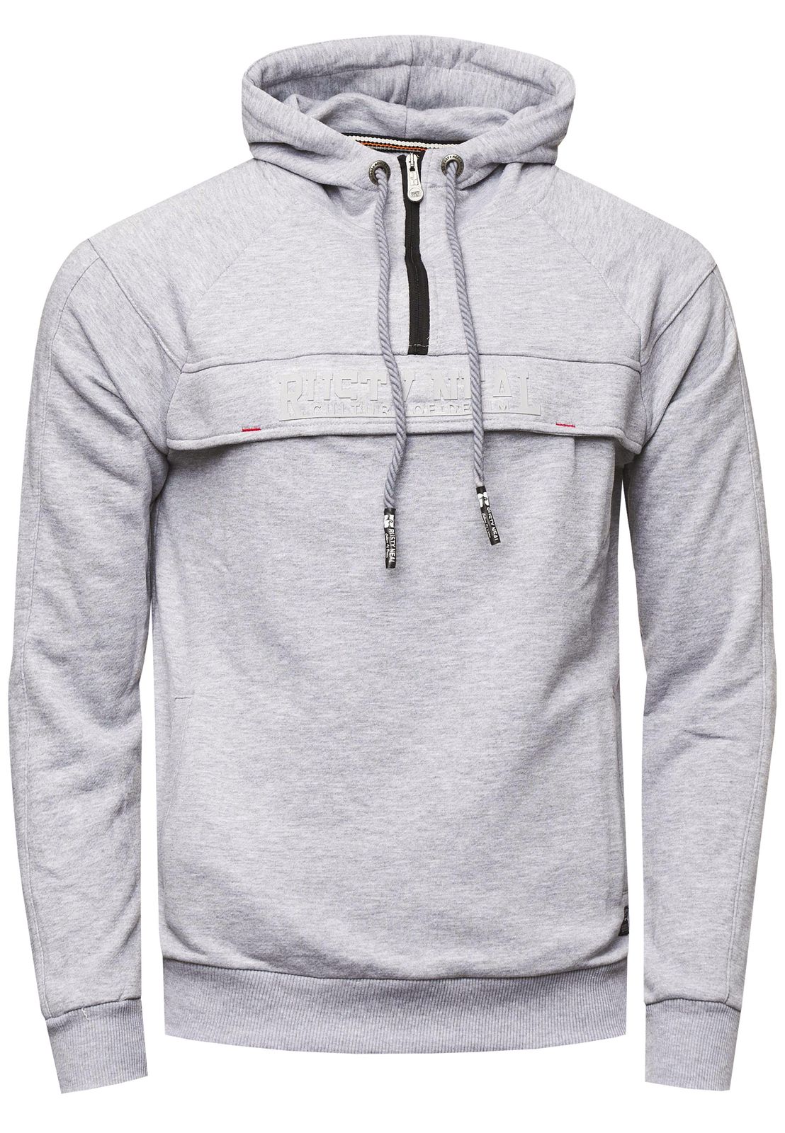 Sportlicher Hoodie für Herren Kapuzen-Pullover mit Marken-Schriftzug auf lässigem Frontdetail Sweater Sweatshirt 19150 Grau Melange