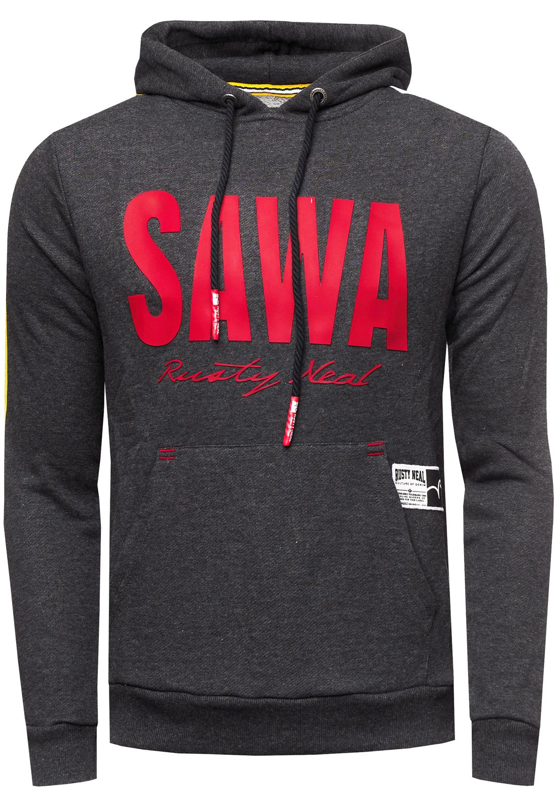 Sportlicher Kapuzen-Sweater für Herren mit großem Print und Schriftzug auf der Front Hoodie Pullover 19154 in Schwarz, Anthrazit oder Grau