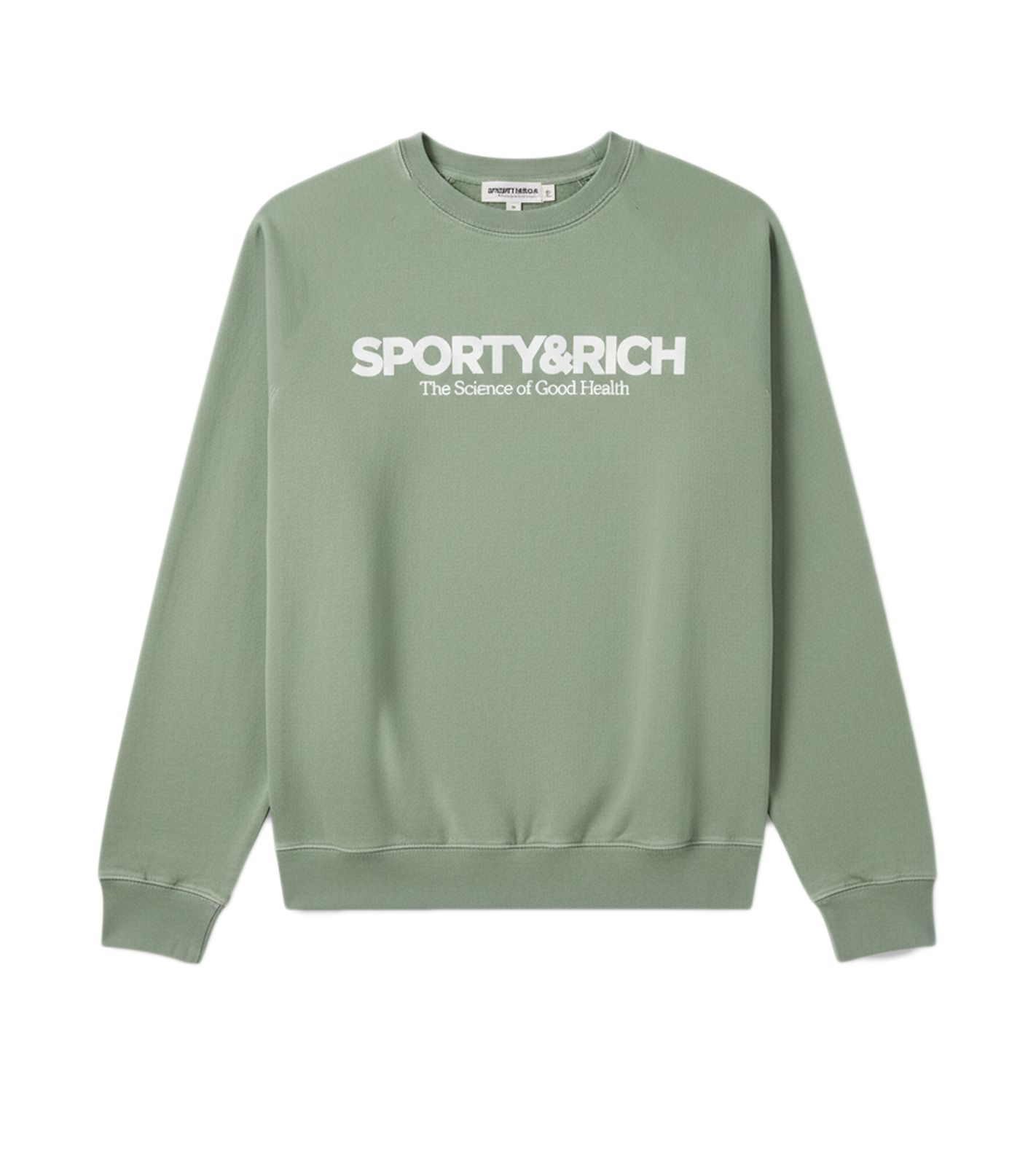 Sporty & Rich Herren Pullover mit Rundhalsausschnitt Science-Logo Lässiges Streetwear-Design aus Premium-Material Grün/Weiß