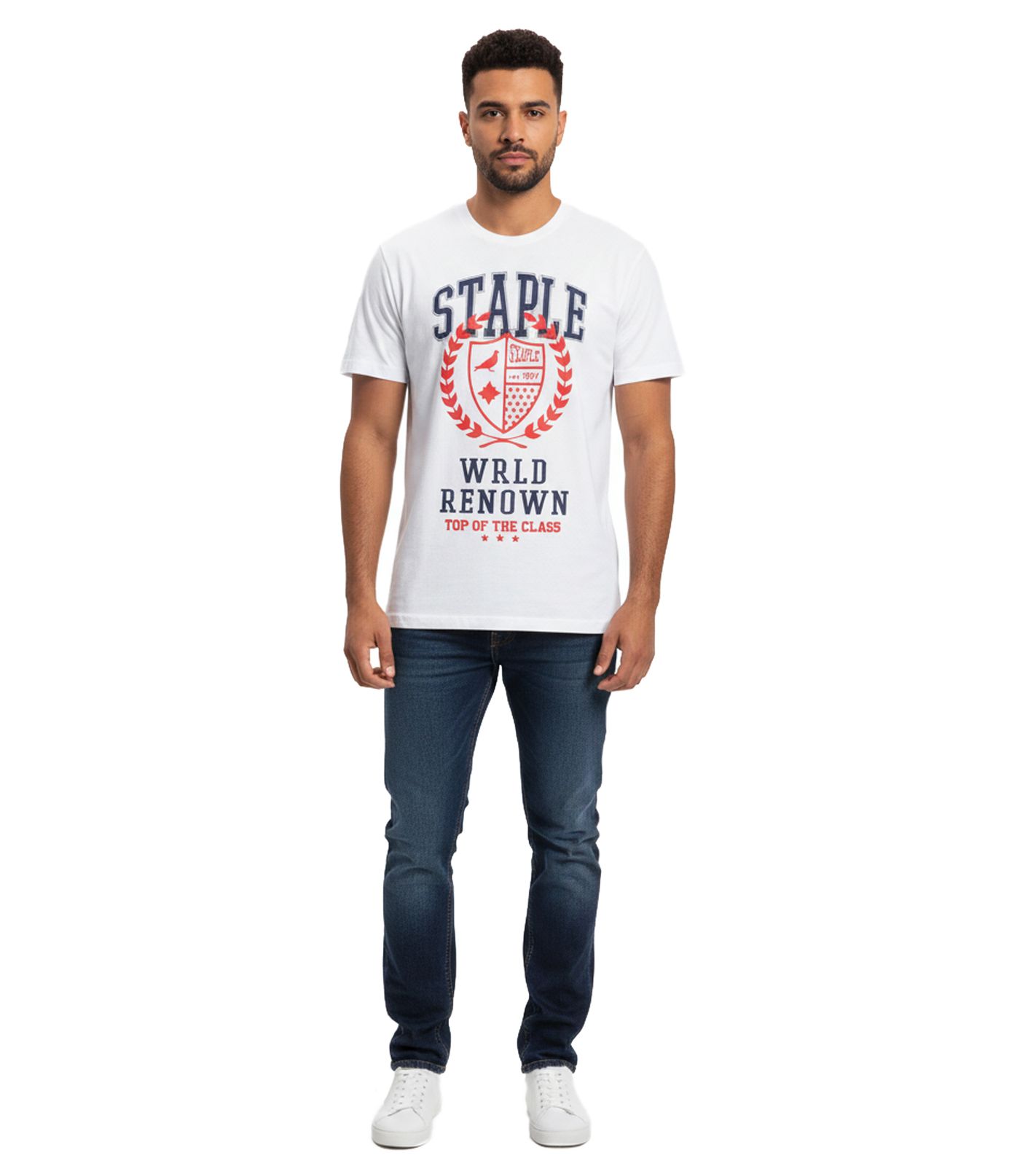 - großer Frontprint "STAPLE WRLD RENOW TOP TO THE CLASS" + großes Logo-Patch mittig auf der Brust