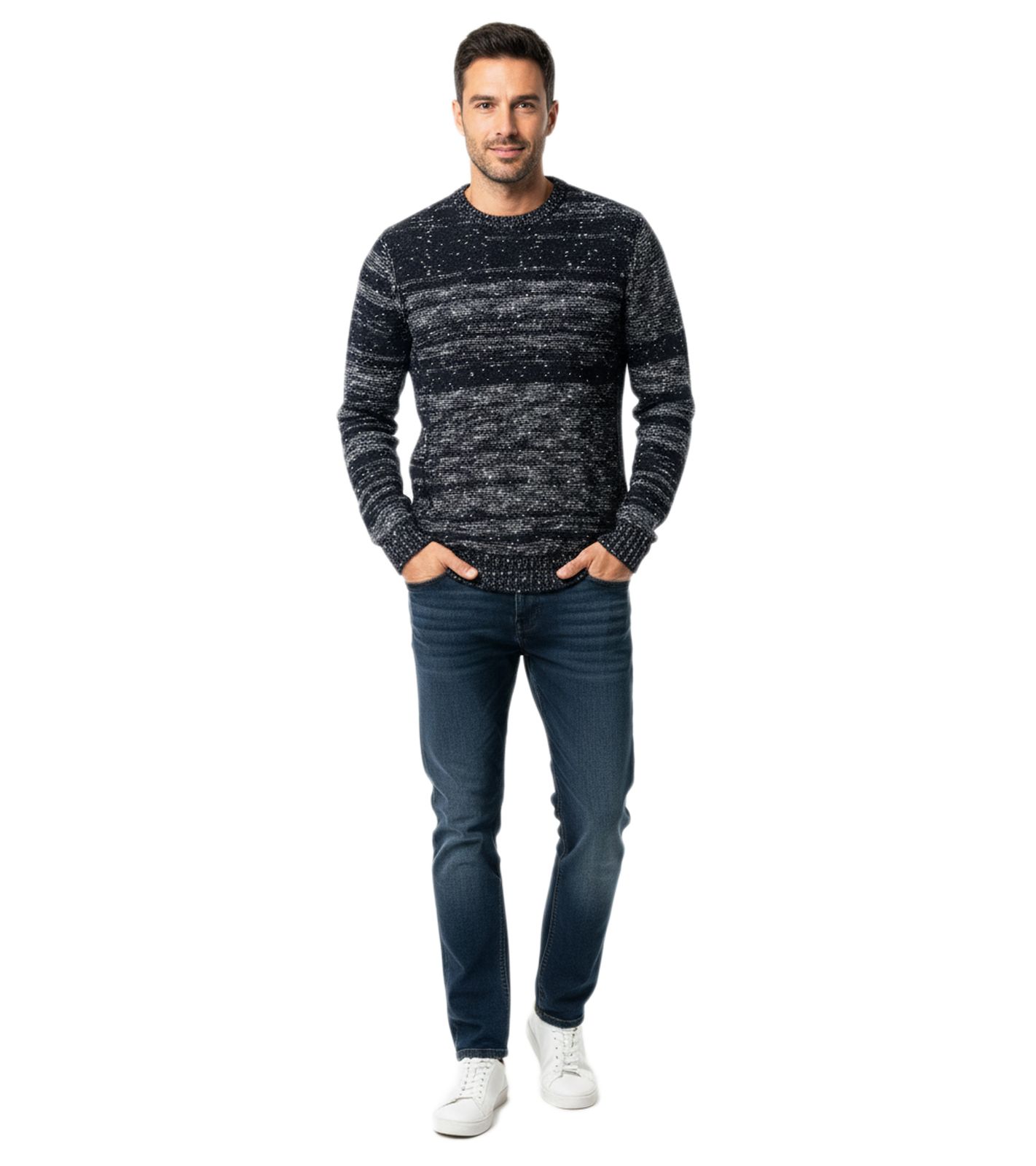 Stilvoller und hochwertiger melierter Strickpullover für einen modernen und vielseitigen Alltagslook 6245 Marine