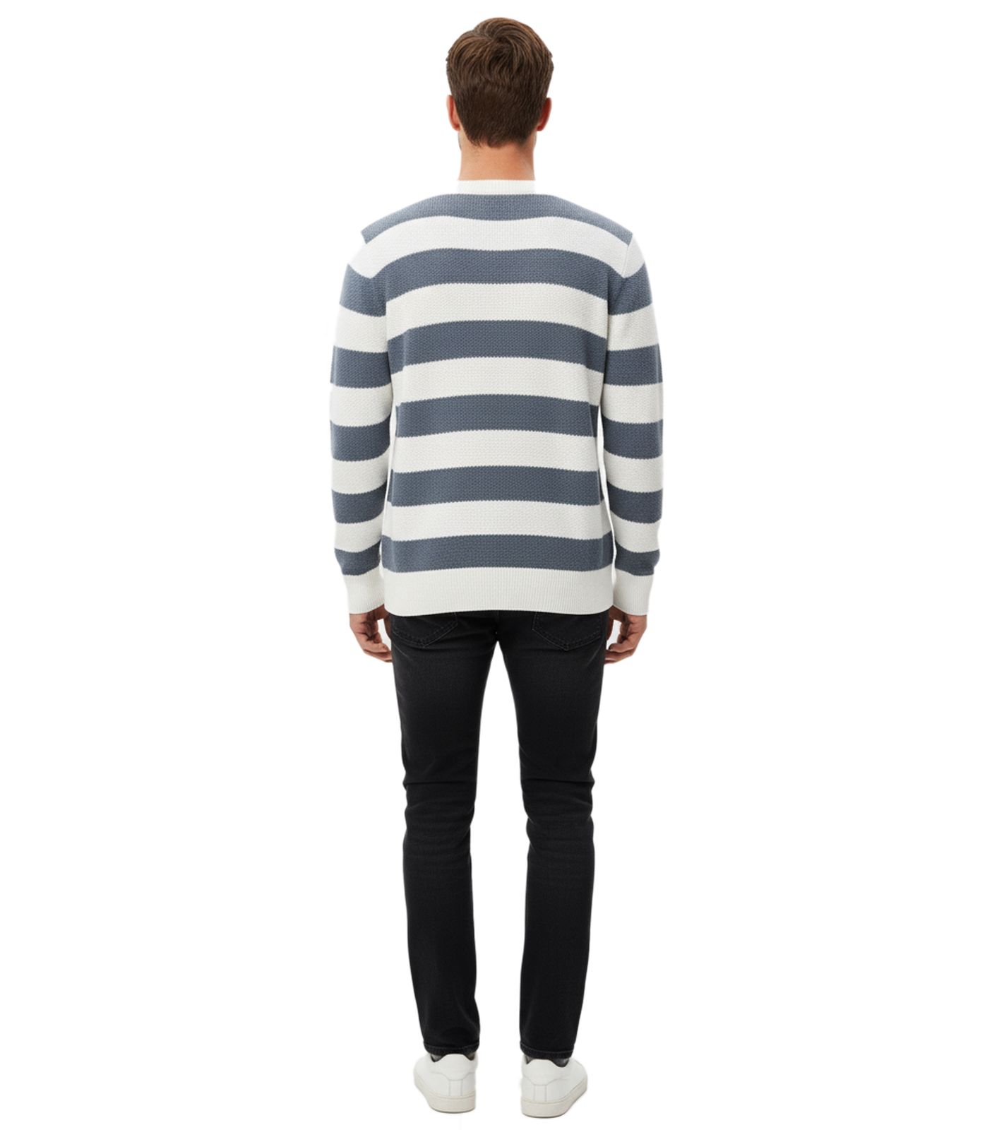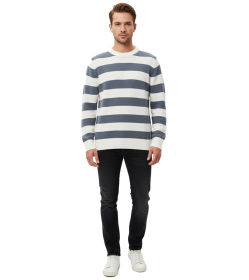 Stylischer ESPRIT Herren Strick-Pullover im Streifen-Design Rundhals-Sweater Baumwoll-Pullover Blau/Weiß