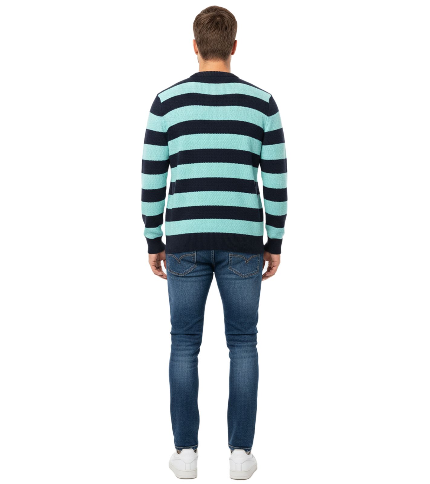 Stylischer ESPRIT Herren Strick-Pullover im Streifen-Design Rundhals-Sweater Baumwoll-Pullover Dunkelblau/Türkis