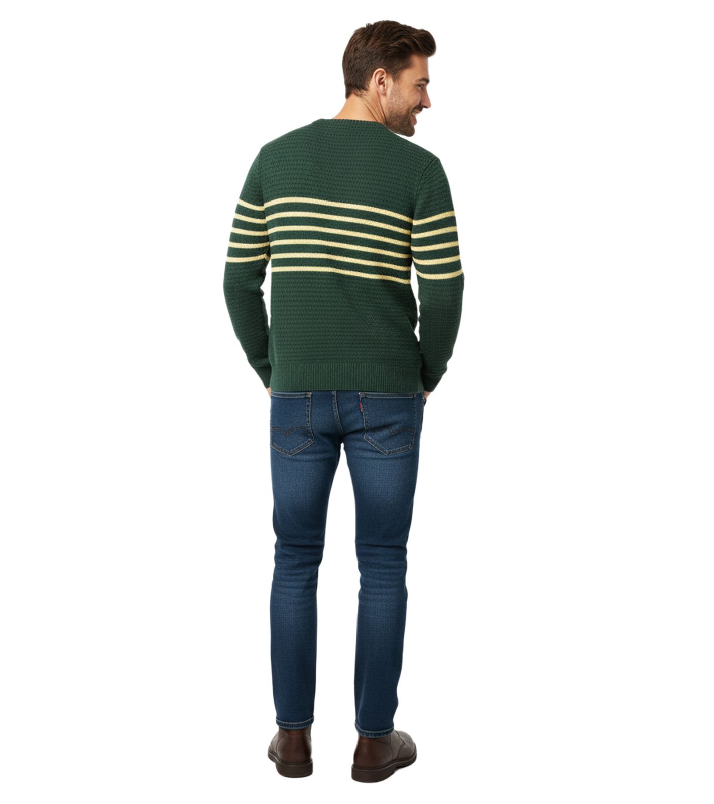 Stylischer ESPRIT Herren Strick-Pullover mit Streifen Rundhals-Sweater Baumwoll-Pullover Grün