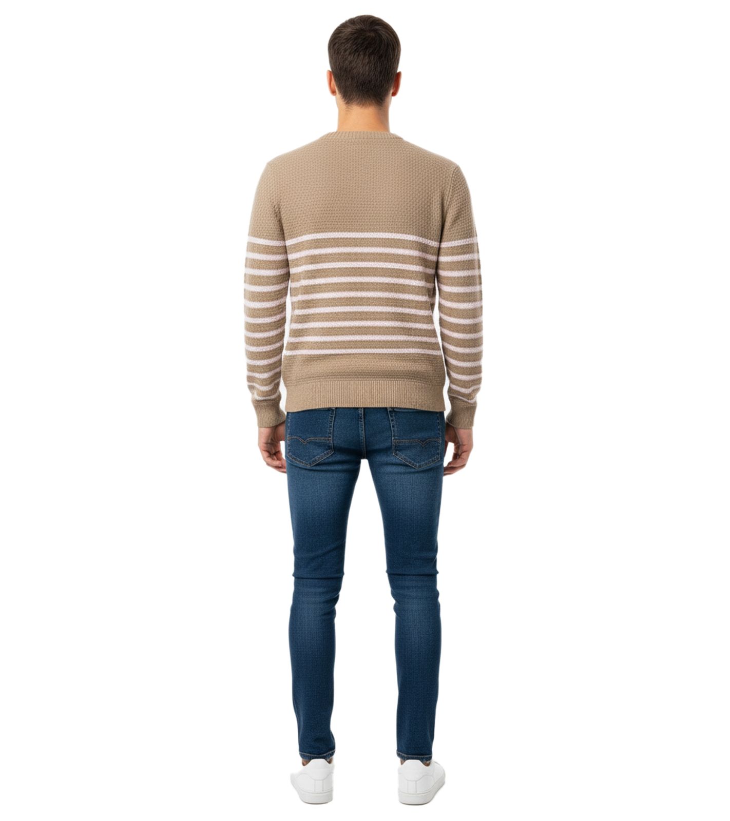 Stylischer ESPRIT Herren Strick-Pullover mit Streifen Rundhals-Sweater Baumwoll-Pullover Khaki/Rosa