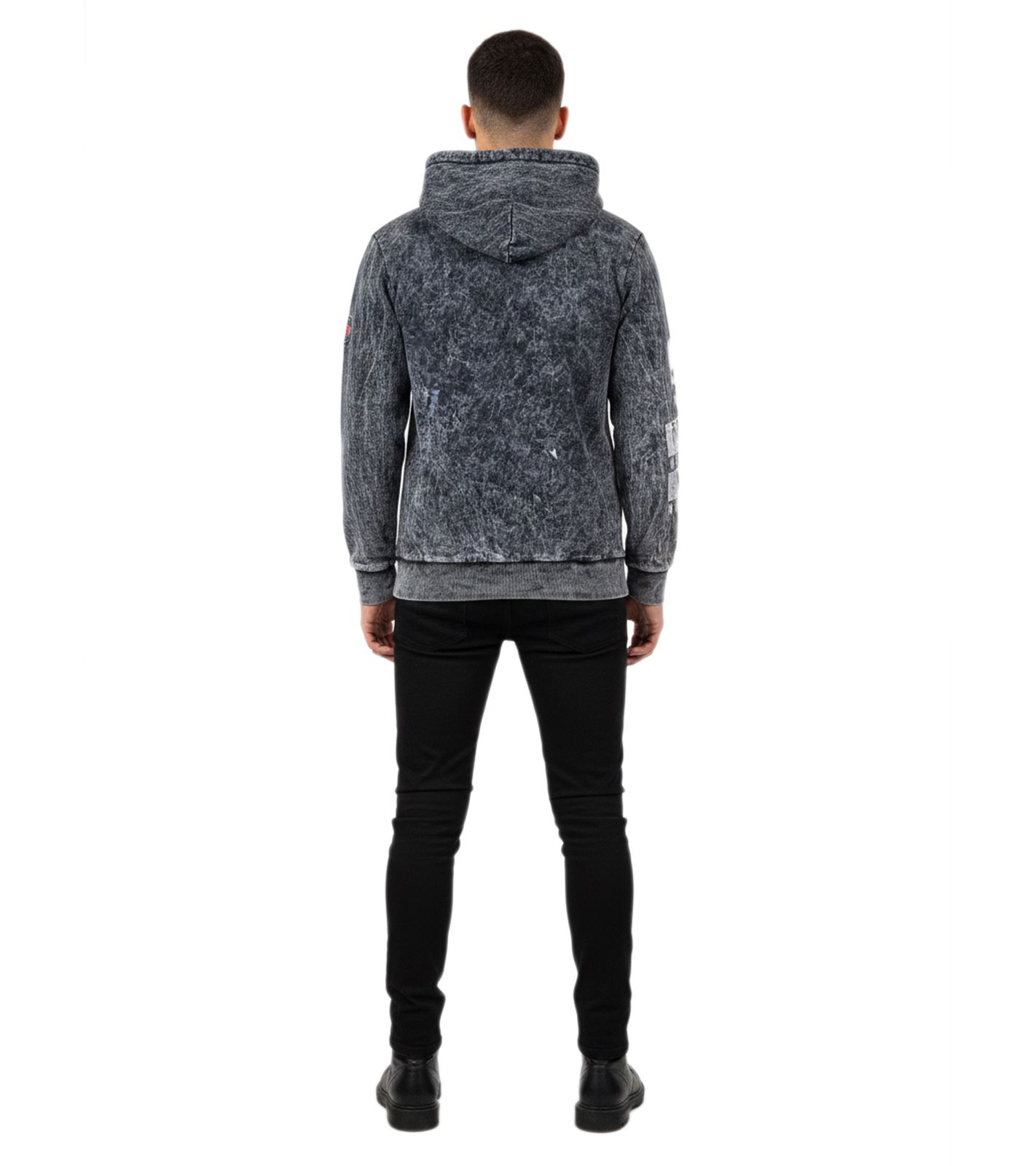 Stylischer Herren Kapuzen-Pullover Vintage-Washed Hoodie mit Grunge-Print Sweatshirt 19124 Schwarz