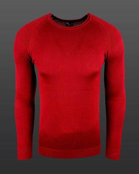 Stylischer Herren Strick-Pullover Biker-Look Slim Fit Rundhals-Sweater 6269 Rot
