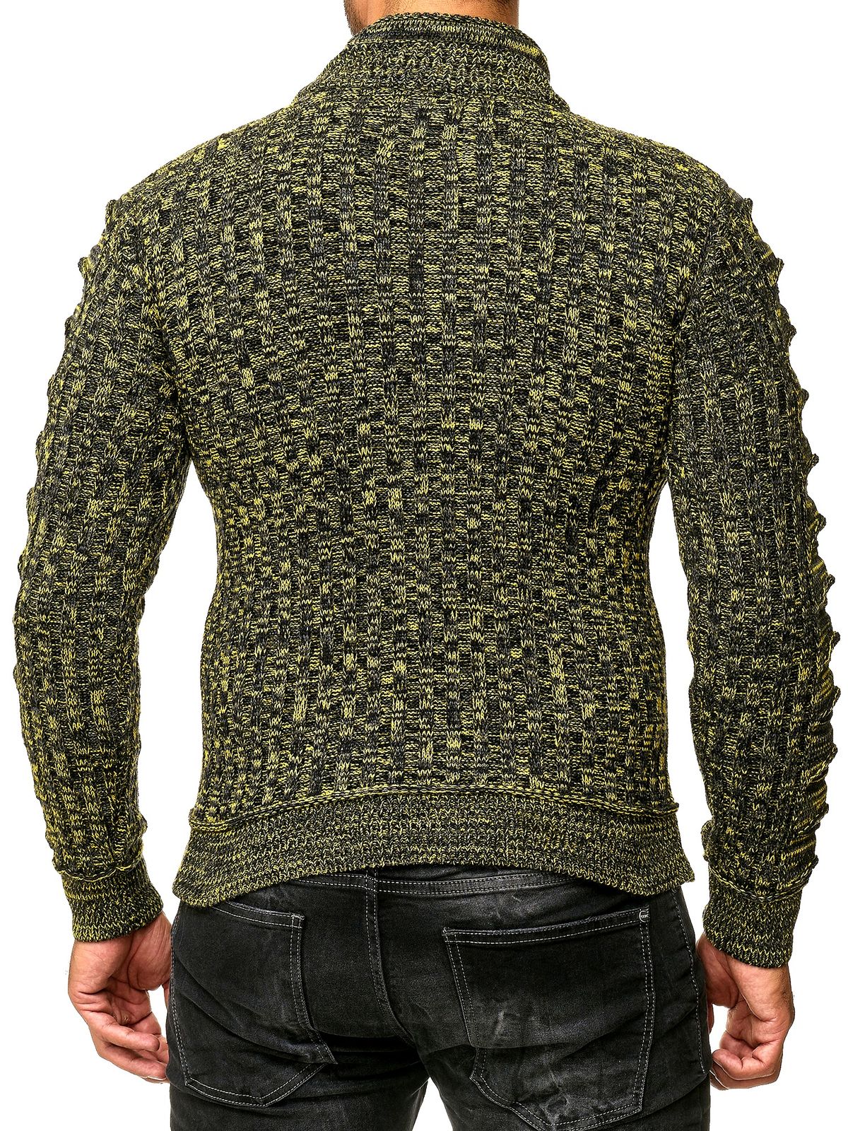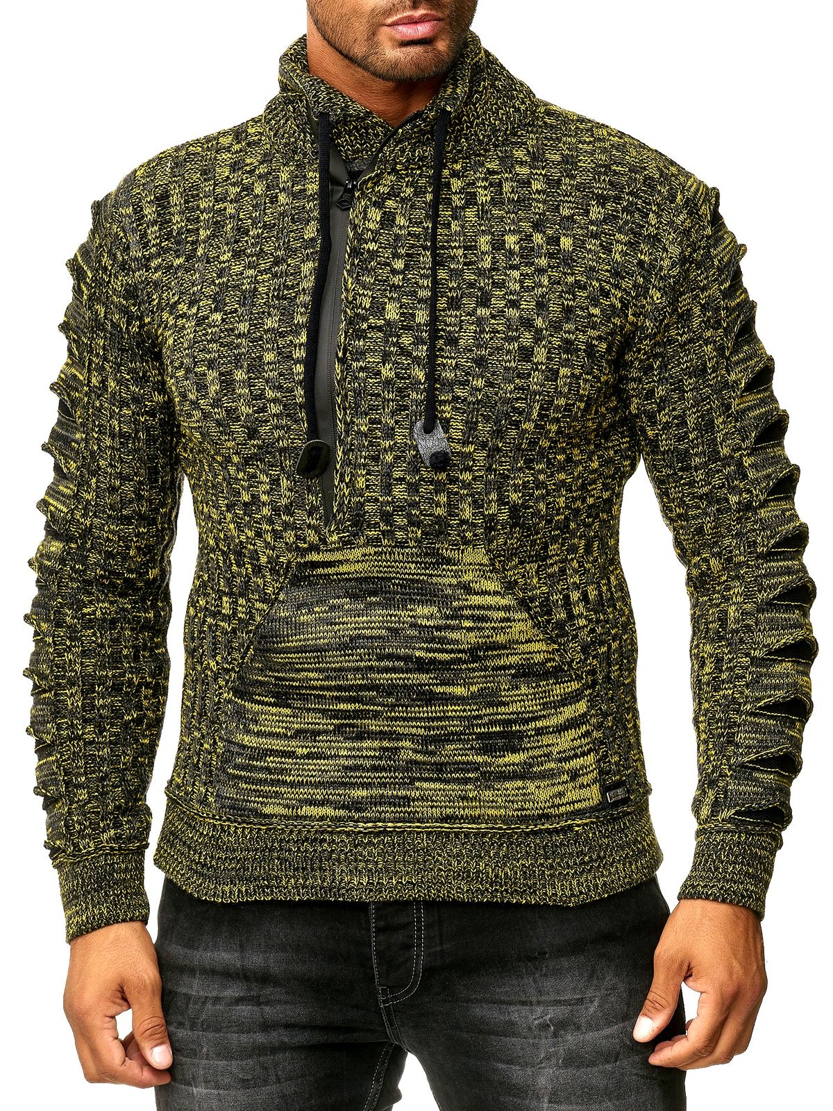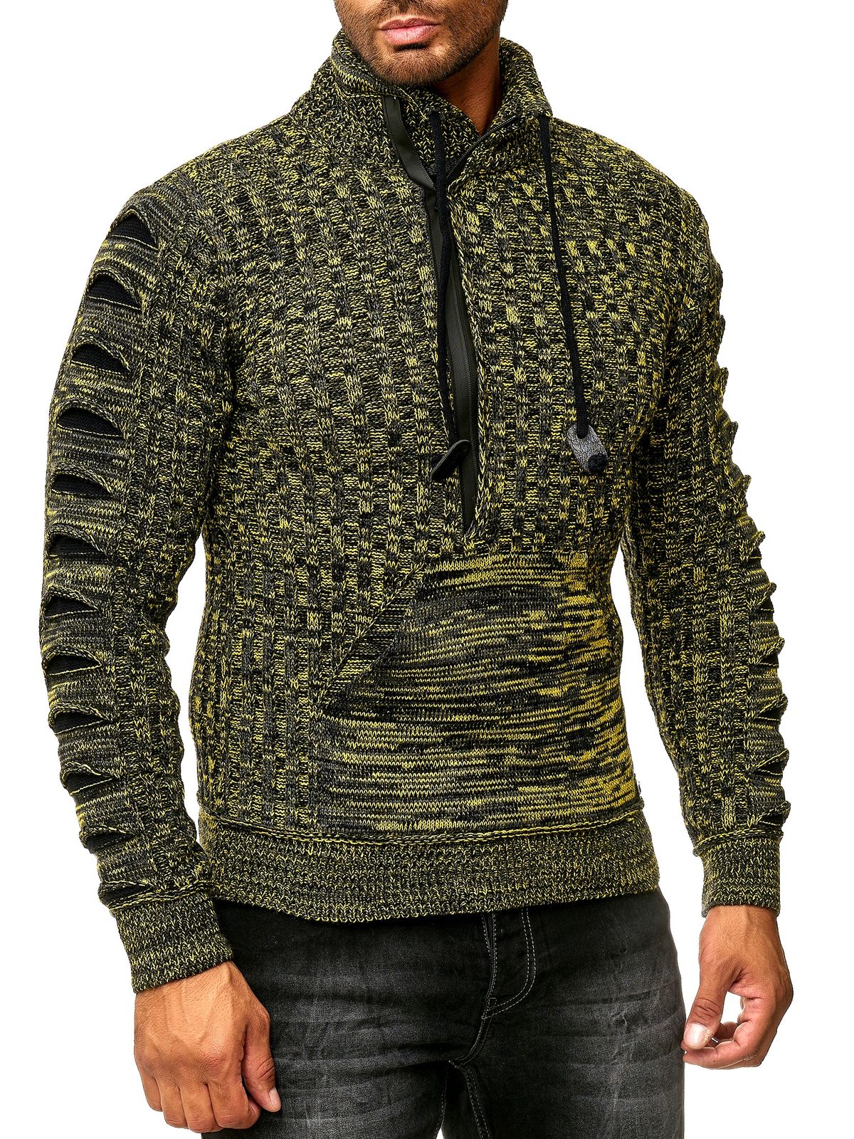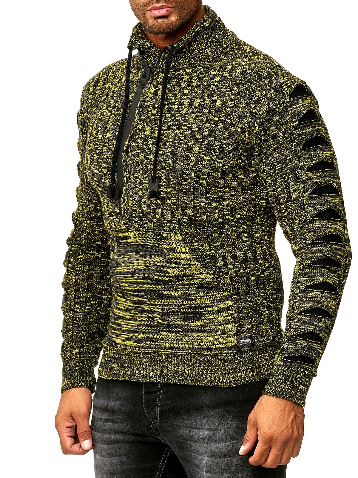 Stylischer Herren Strick-Pullover mit gestrickten Schlitzen am Ärmel Sweater 13328 Gelb