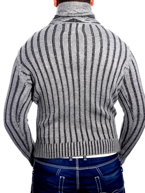 Stylischer Herren Strick-Pullover Zopfstrick-Muster Stehkragen-Sweater 3176 Anthrazit