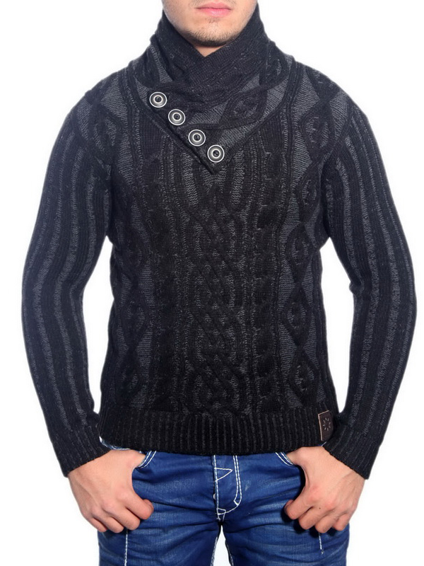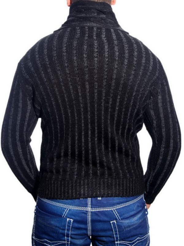 Stylischer Herren Strick-Pullover Zopfstrick-Muster Stehkragen-Sweater 3176 Schwarz