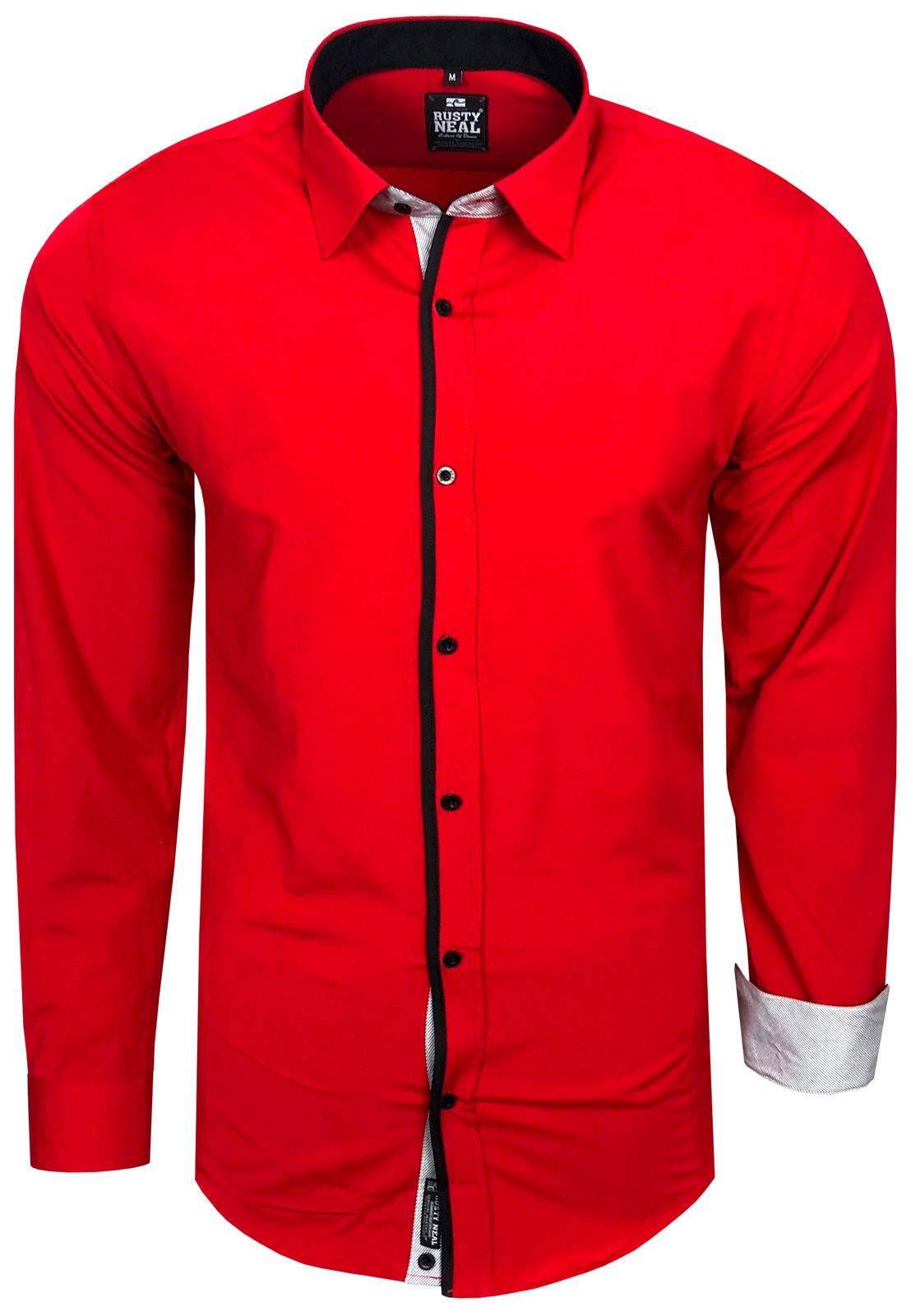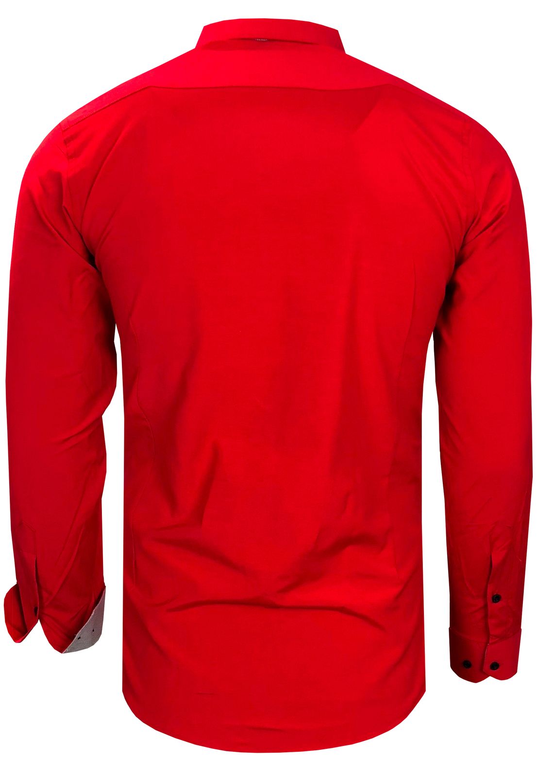 Stylisches Ausgeh-Hemd für Herren Langarm-Shirt mit kontrastfarbigen Detail an Knopfleiste Business-Hemd 70 Rot