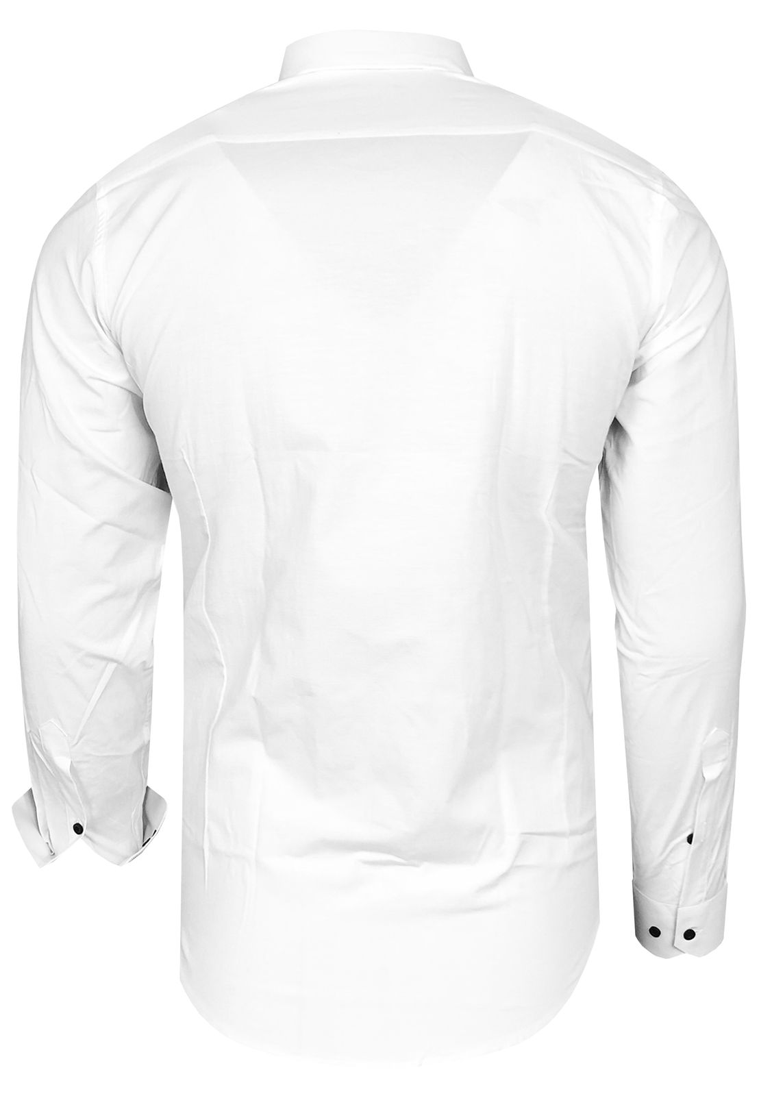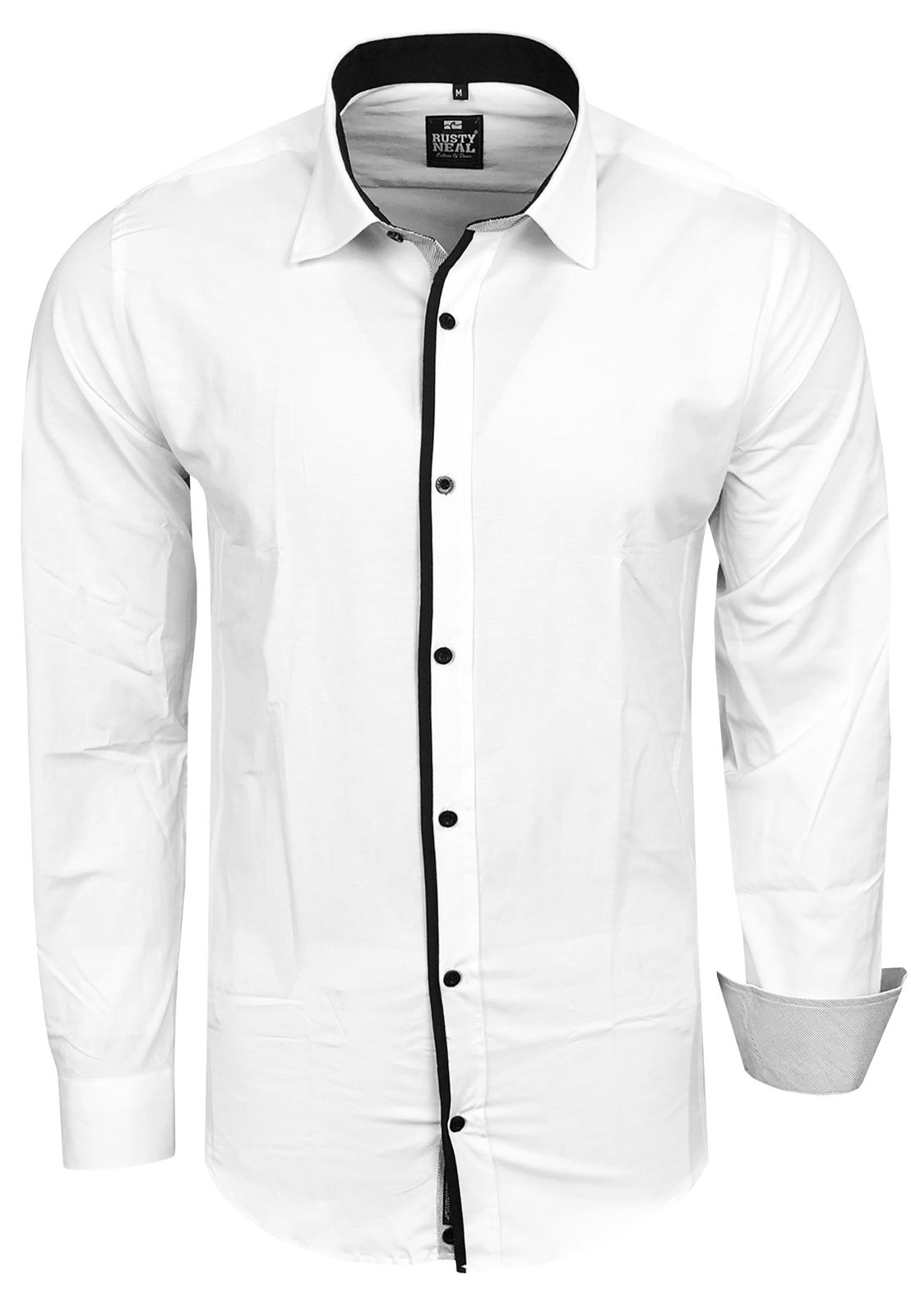 Stylisches Ausgeh-Hemd für Herren Langarm-Shirt mit kontrastfarbigen Detail an Knopfleiste Business-Hemd 70 Weiß