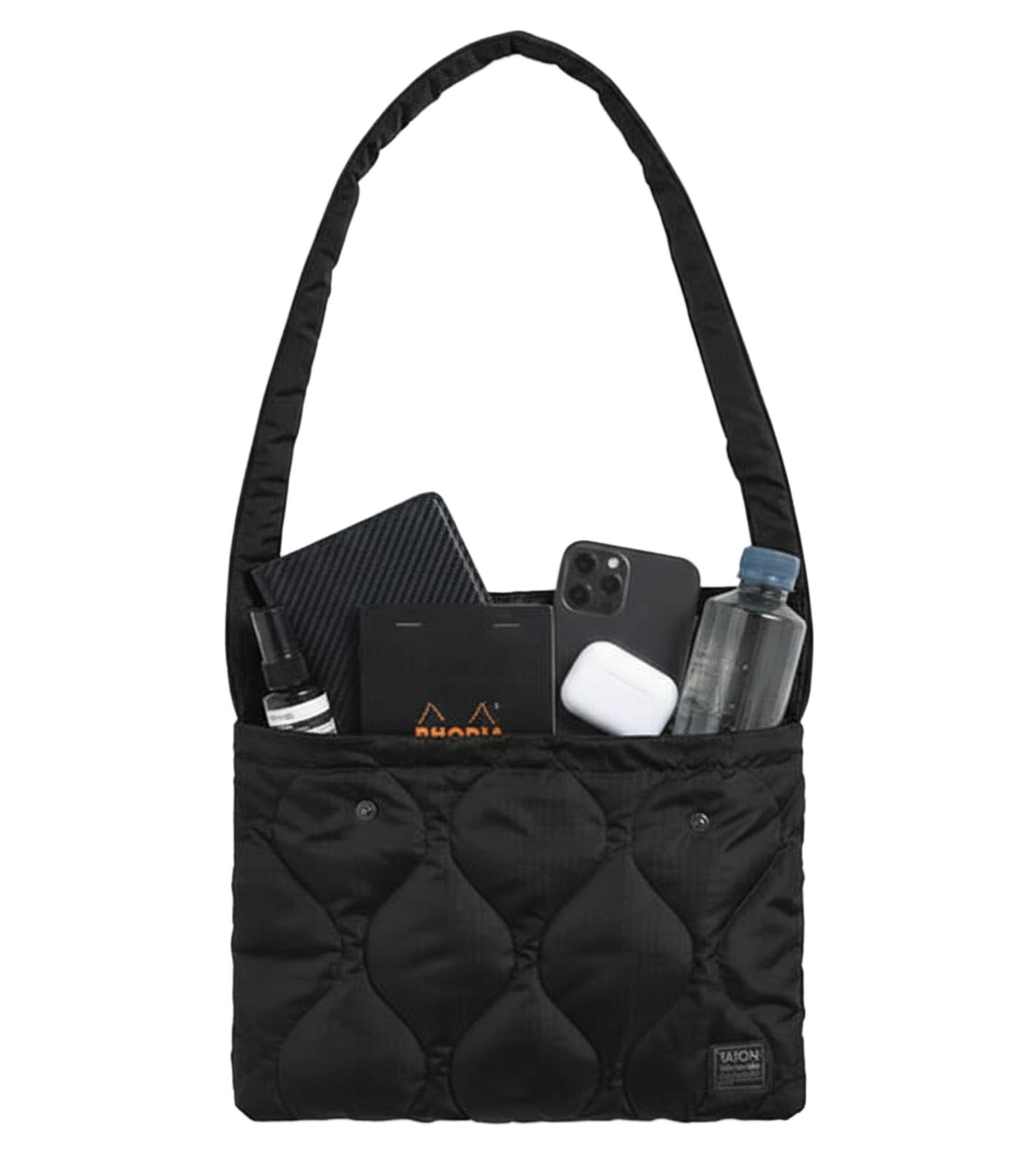 TAION Daunen-Umhängetasche mit voluminöser Haptik Sacoche im militärischen Design Schwarz