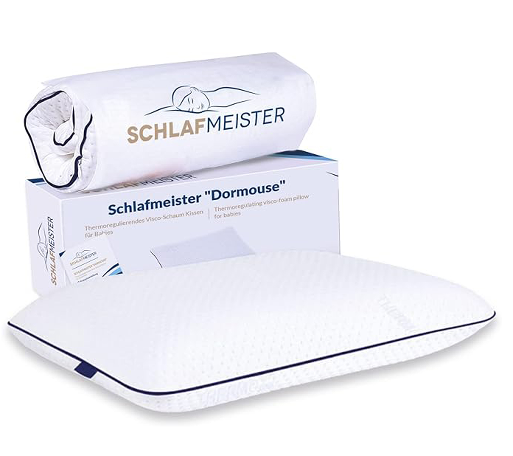 thermoregulierendes SCHLAFMEISTER Dormouse Kleinkinder Kopf-Kissen Visco-Schaum-Kissen OEKO-TEX zertifiziert 45x30x8cm Weiß
