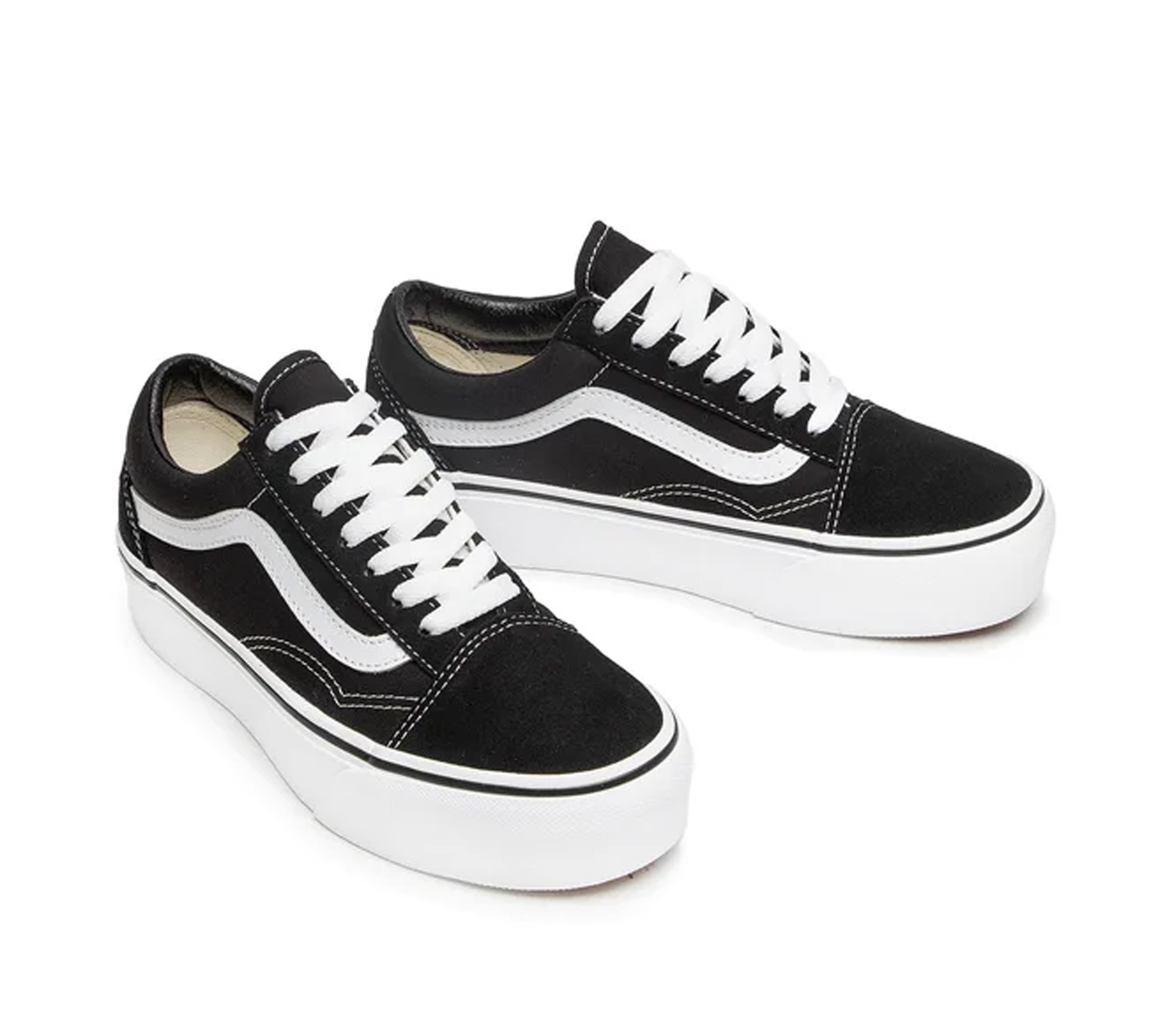 Der Vans UA Old Skool Platform kombiniert die klassische Skateschuh-Silhouette mit einer erhöhten Plateausohle für einen modernen Look. Das robuste Obermaterial aus Wildleder und Canvas sorgt für Langlebigkeit, während die gepolsterte Innensohle und der verstärkte Zehenbereich hohen Tragekomfort bieten. Die rutschfeste Gummisohle in Waffel-Optik liefert optimalen Grip im Alltag.