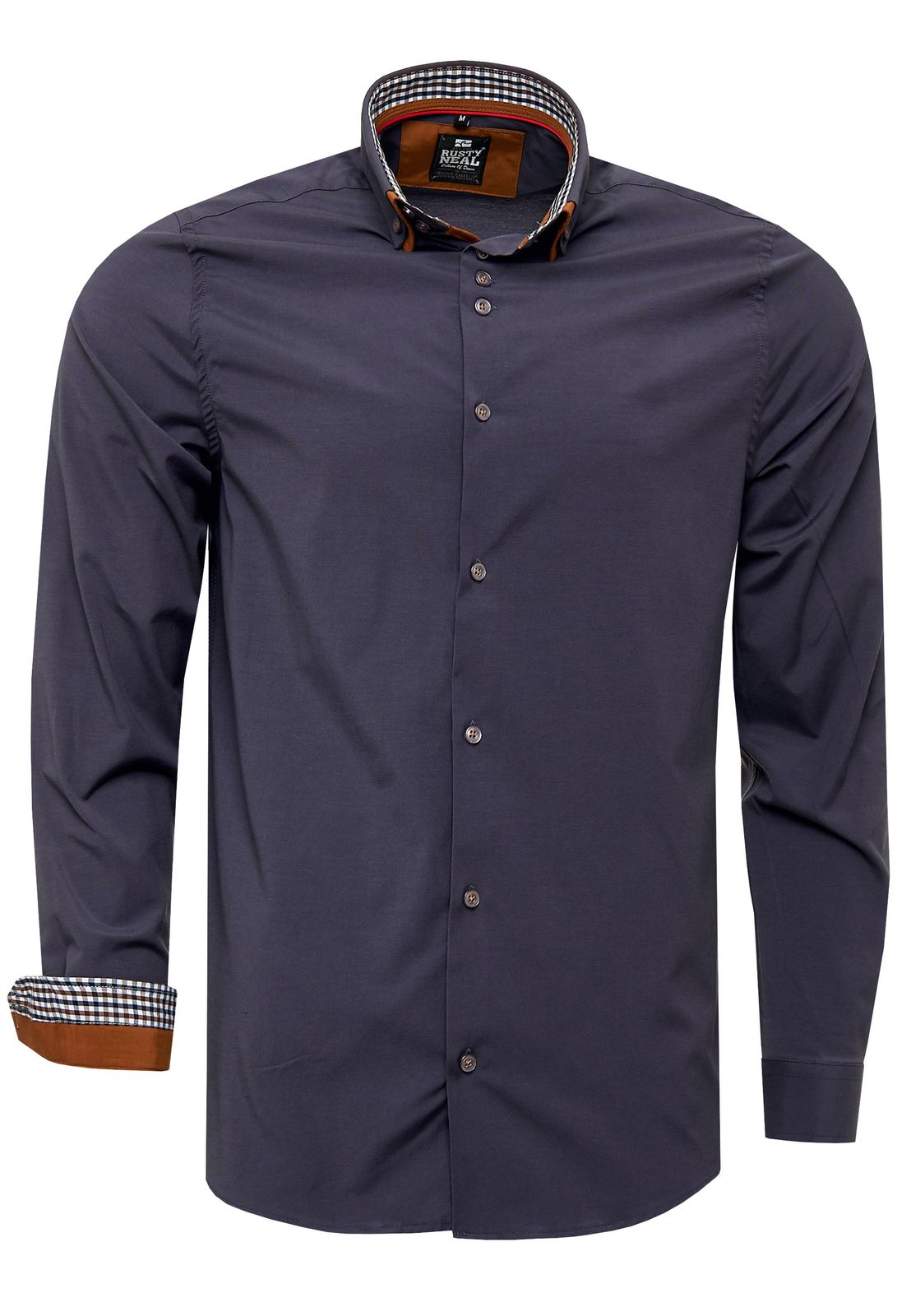 Trendiges Button-Down-Hemd für Herren Freizeit-Shirt Langarm-Hemd 80 Anthrazit