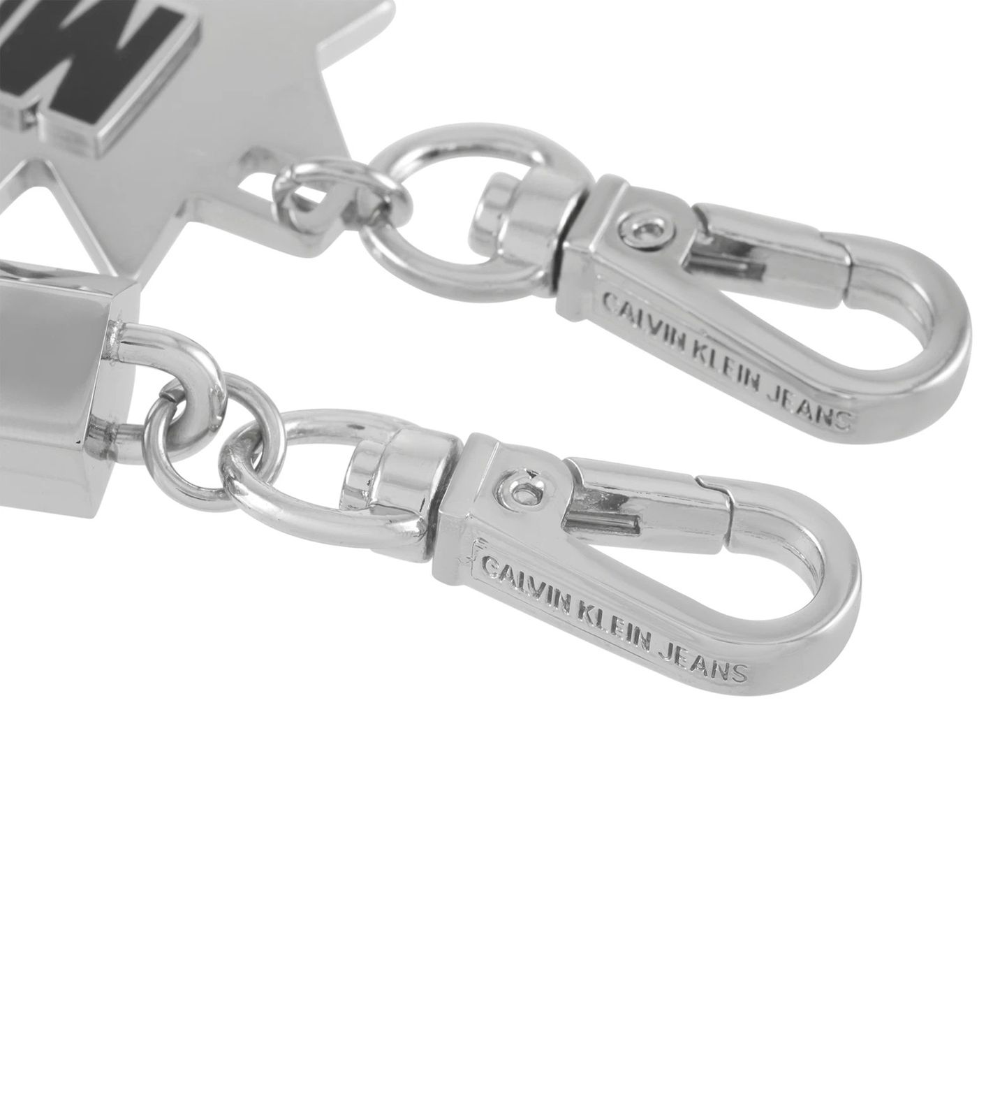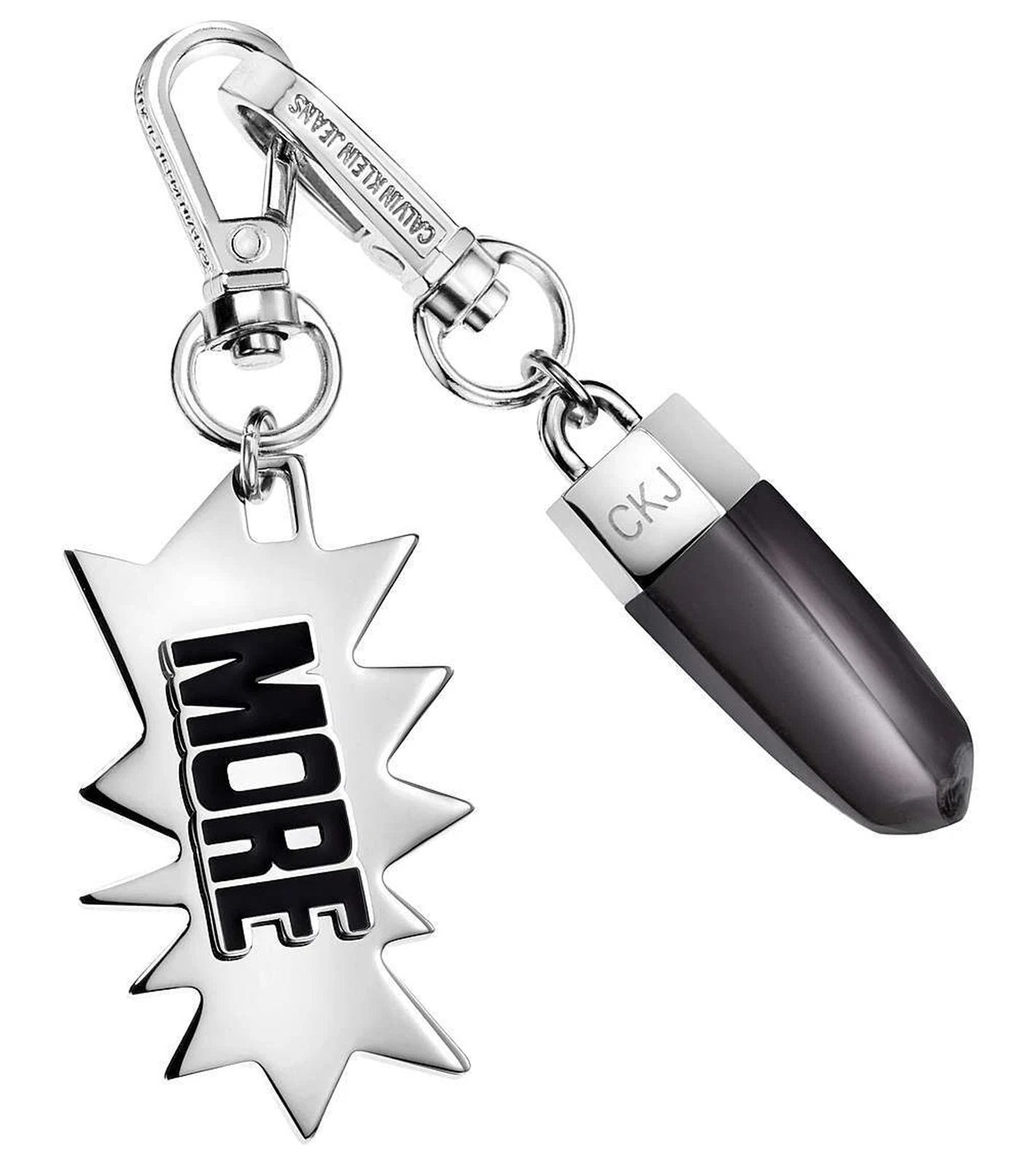 Trendiges Calvin Klein Charm-Set Downtown Edelstahl-Anhänger mit kontrastfarbigen Harz und MORE-Schriftzug Taschen-Accessoires 7x1,3cm KJJCBA090100 Silber/Schwarz