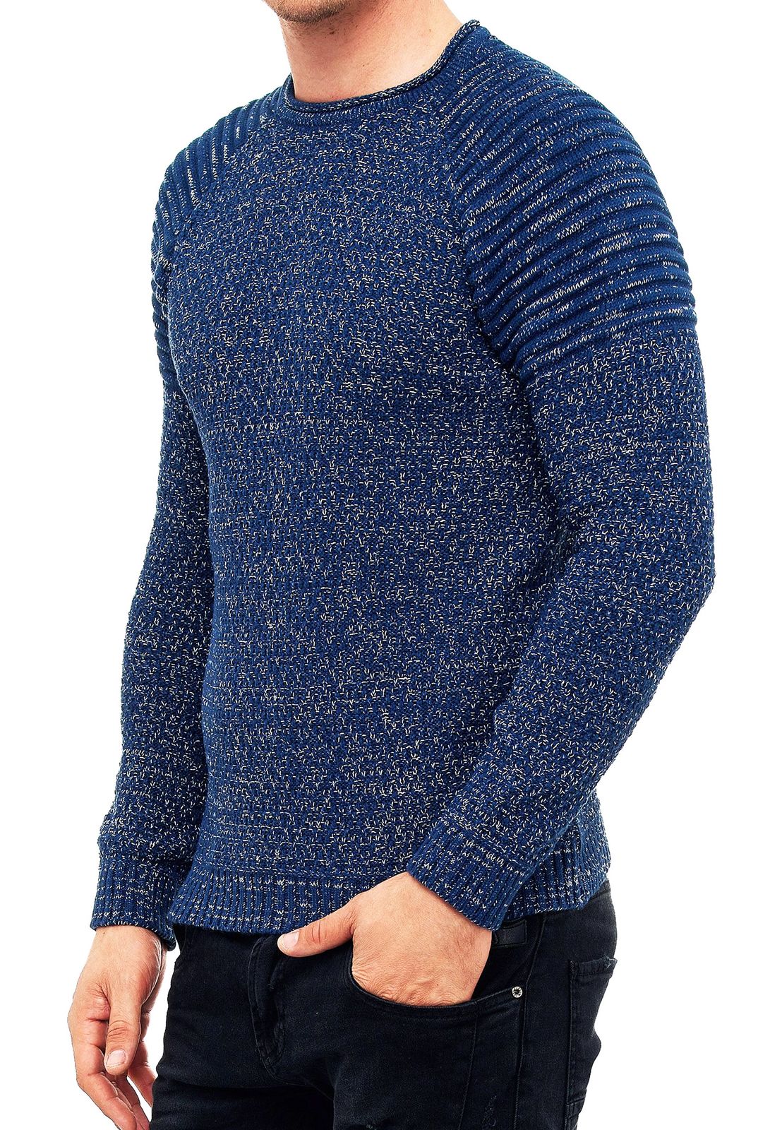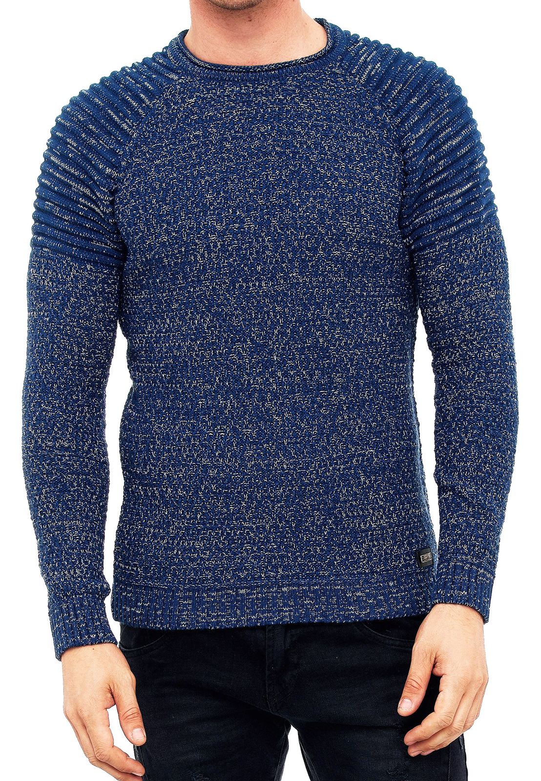 Urbaner Herren Feinstrick-Pullover Rundhals-Sweater Biker Knitwear Streetwear 6240 Petrol