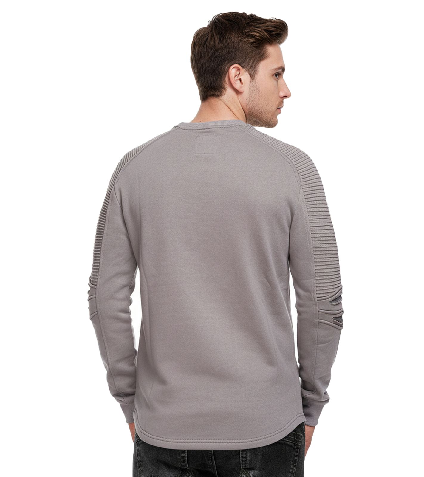Urbanes Sweatshirt für Herren mit geripptem Ärmeldesign Pullover Sweater 19056 Dunkel Grau
