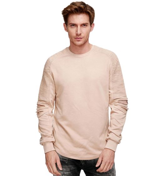Urbanes Sweatshirt für Herren mit geripptem Ärmeldesign Pullover Sweater 19056 Hell Braun