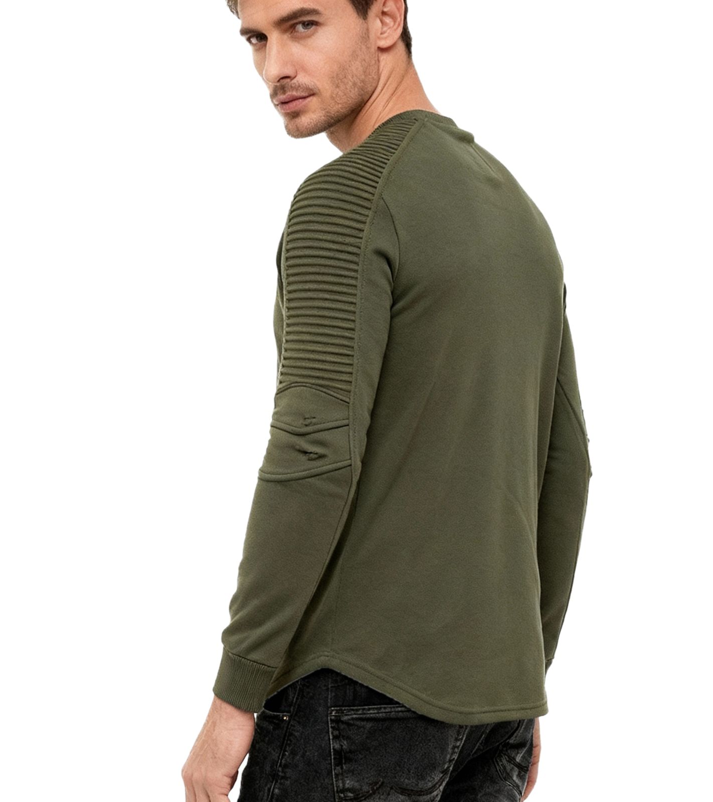 Urbanes Sweatshirt für Herren mit geripptem Ärmeldesign Pullover Sweater 19056 Khaki