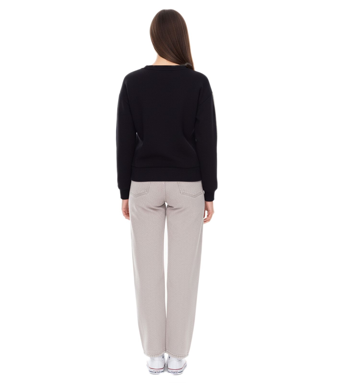vestino Damen Sweatshirt Baumwoll-Shirt mit Strassband Pullover 900299 Schwarz