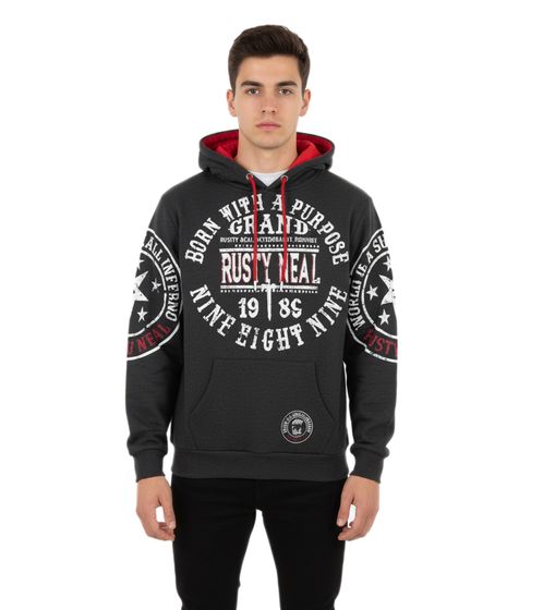 Vielseitiger Herren Kapuzen-Pullover mit coolen Markenprints Hoodie Sweater 19078 Grau