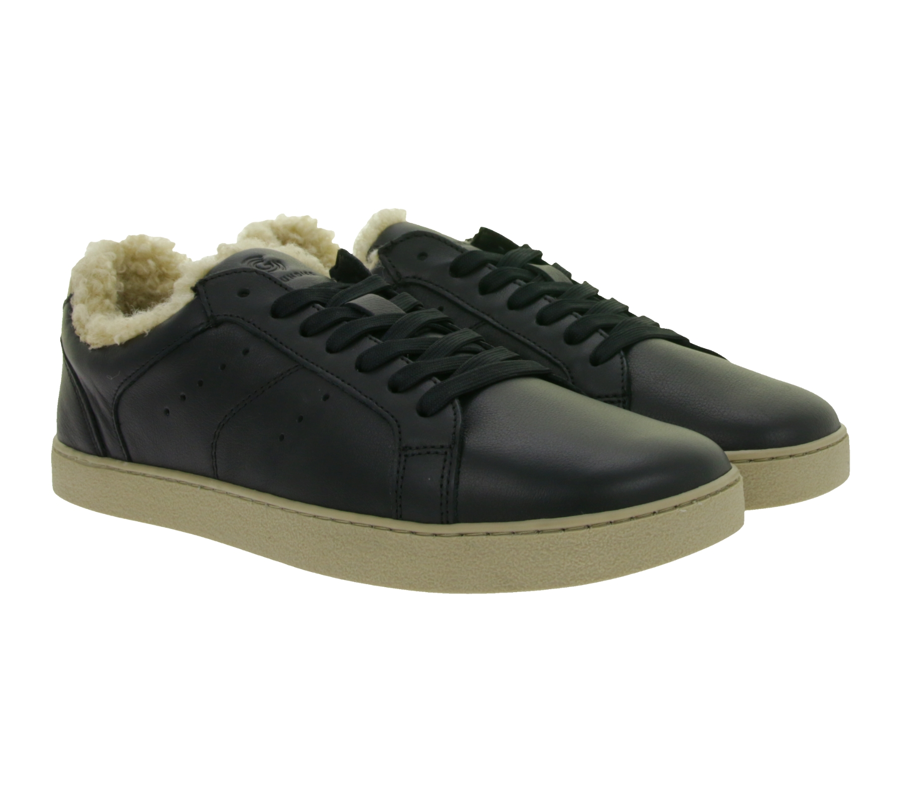 weiche GROUNDIES Barfußschuhe Universe Teddy Damen Low-Top Echtleder Sneaker mit TrueSense Sohle GND-110296-01 Schwarz