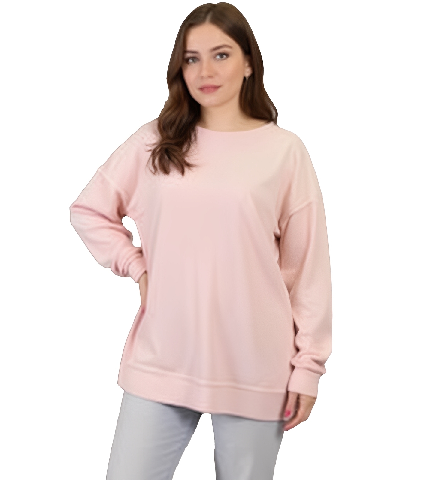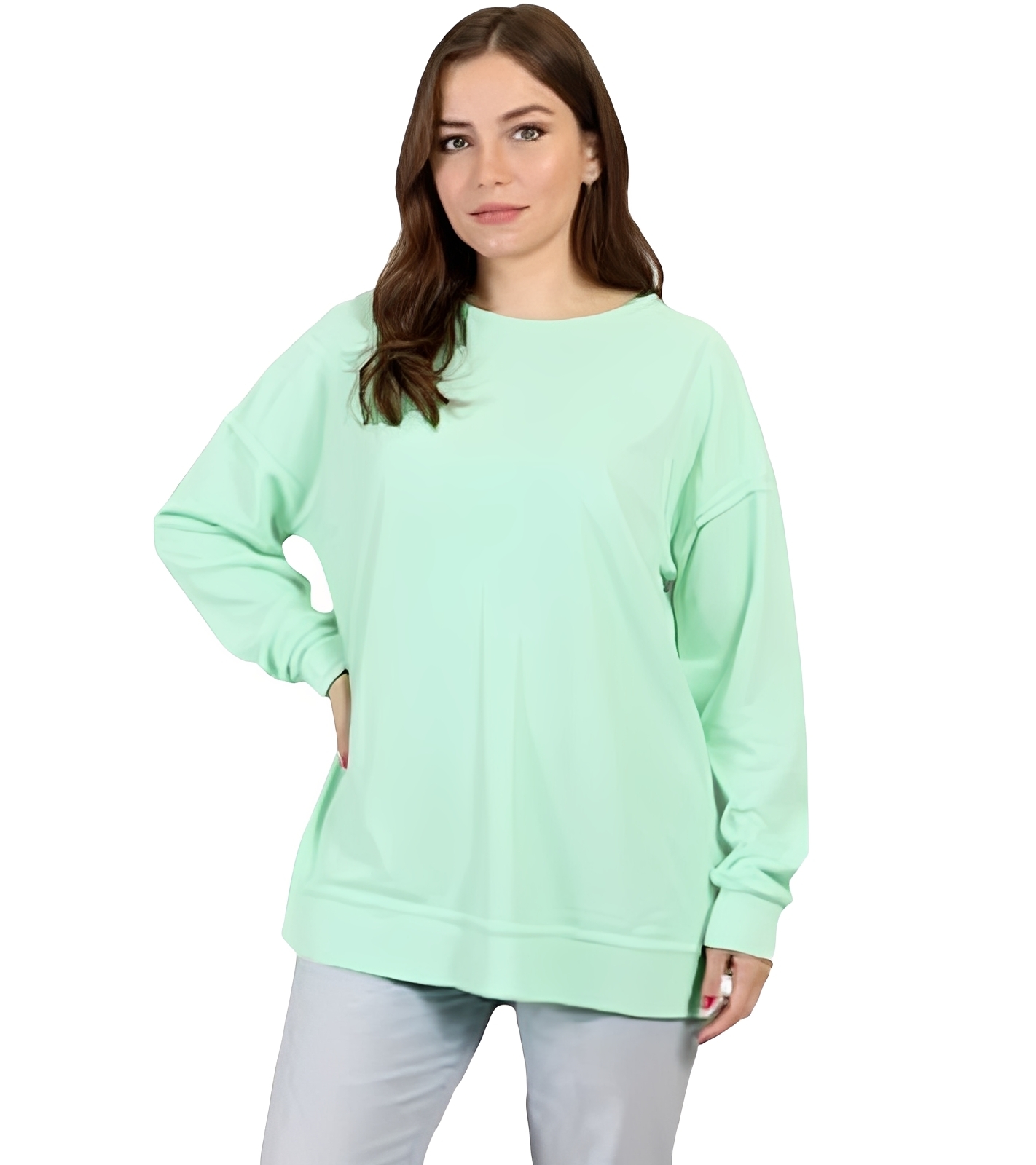 ZEGY Damen Sweatshirt schlichter Baumwoll-Pullover Rundhals-Pulli Sweater 1070 in Mint-Grün oder Rosa