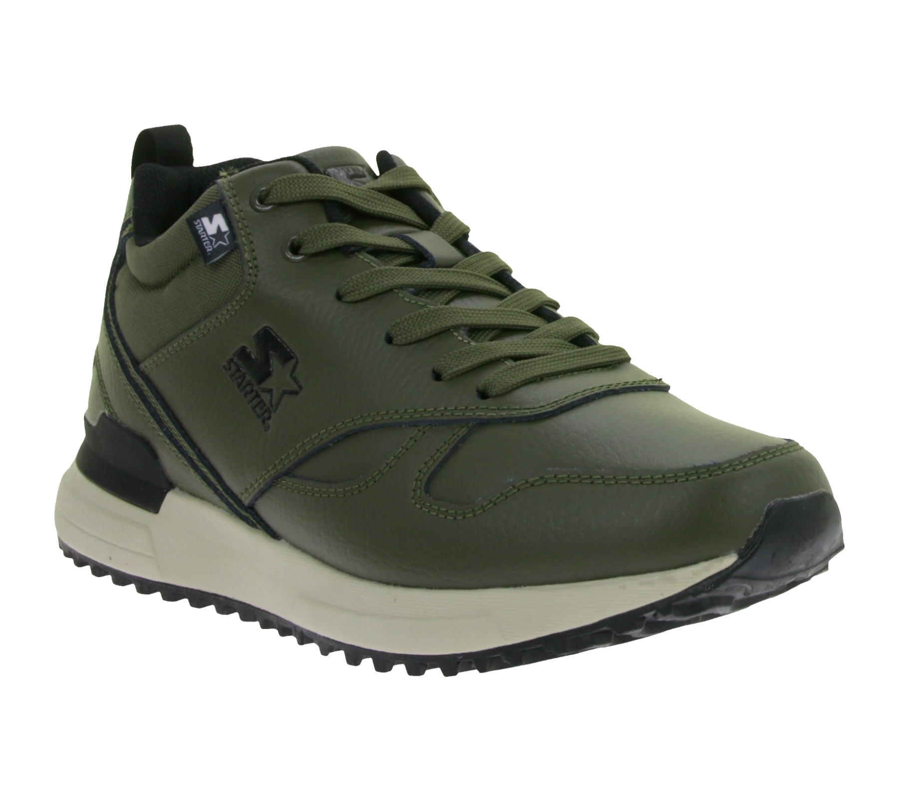 zeitlose STARTER Brandon Herren Sneaker mit beschichtetem Echtleder Retro Turn-Schuhe SMN105321 170 Oliv-Grün