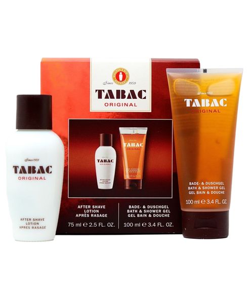 Zeitloses Tabac Herren Körperpflege-Set mit After Shave Lotion 75ml & Duschgel 100ml herb-würziger Duft Weiß