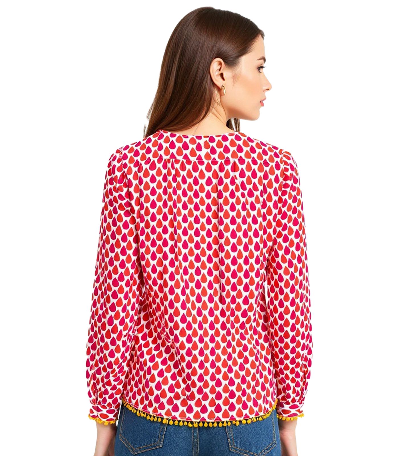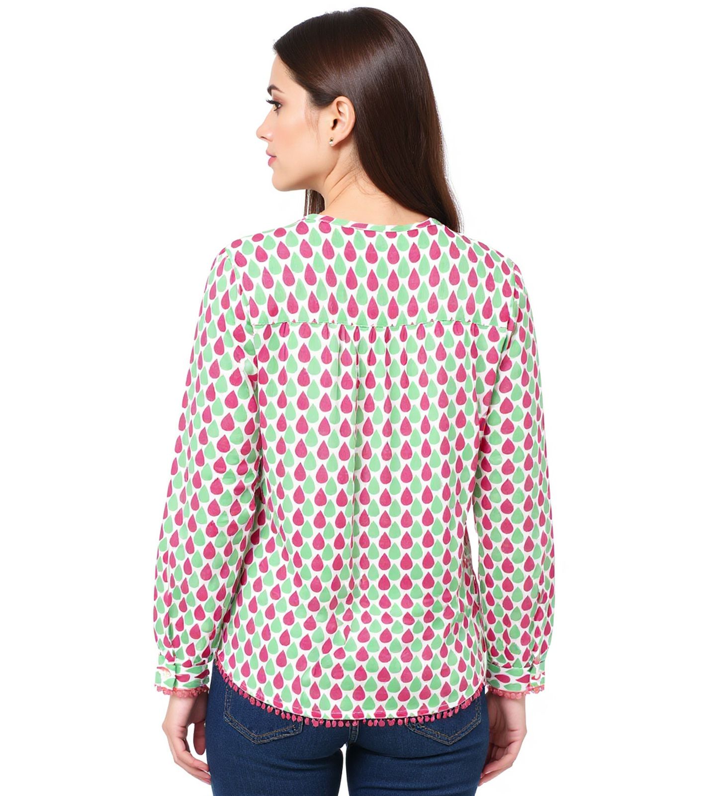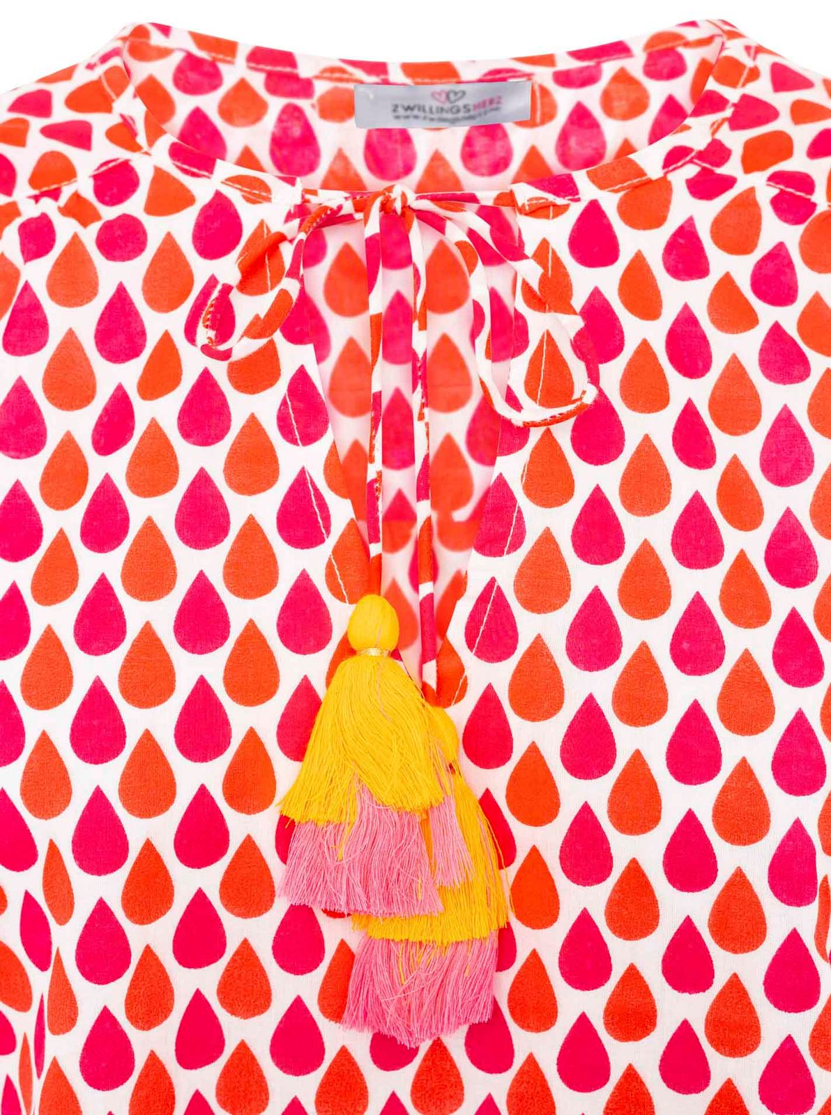 ZWILLINGSHERZ Damen Sommer-Bluse mit Tröpfchen-Muster Baumwoll Langarmshirt 33217 Pink, Grün oder Blau