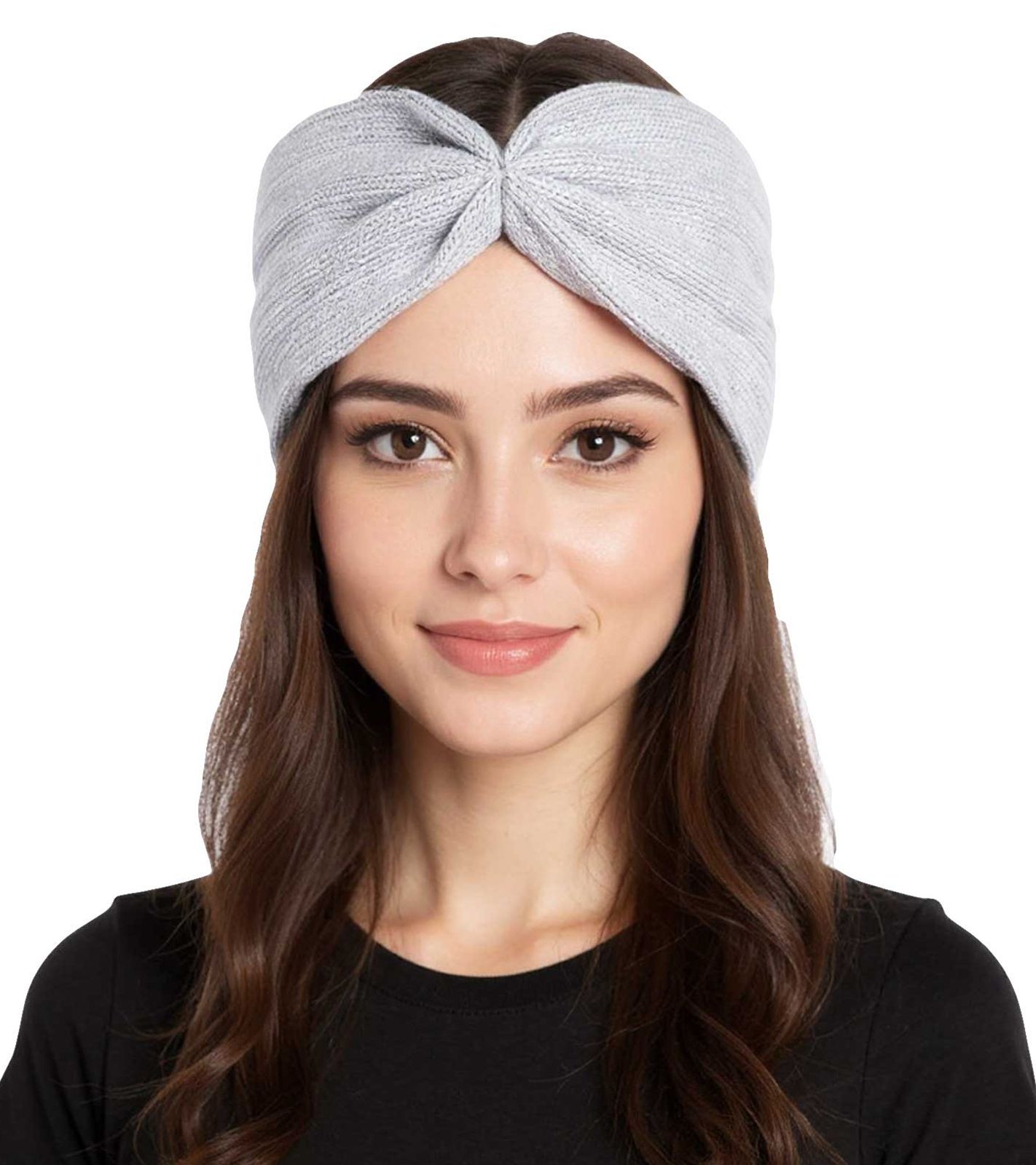 ZWILLINGSHERZ Strick-Stirnband Kaschmir-Stirnband Kopfbedeckung Feinstrick Winter-Stirnband Accessoire 8007 Mod.2 Hellgrau