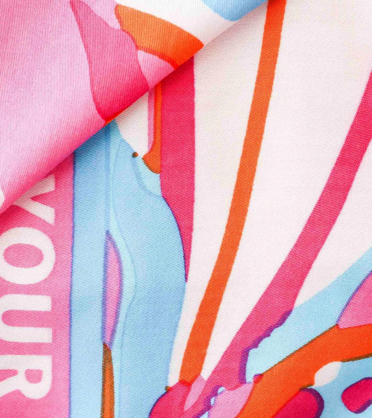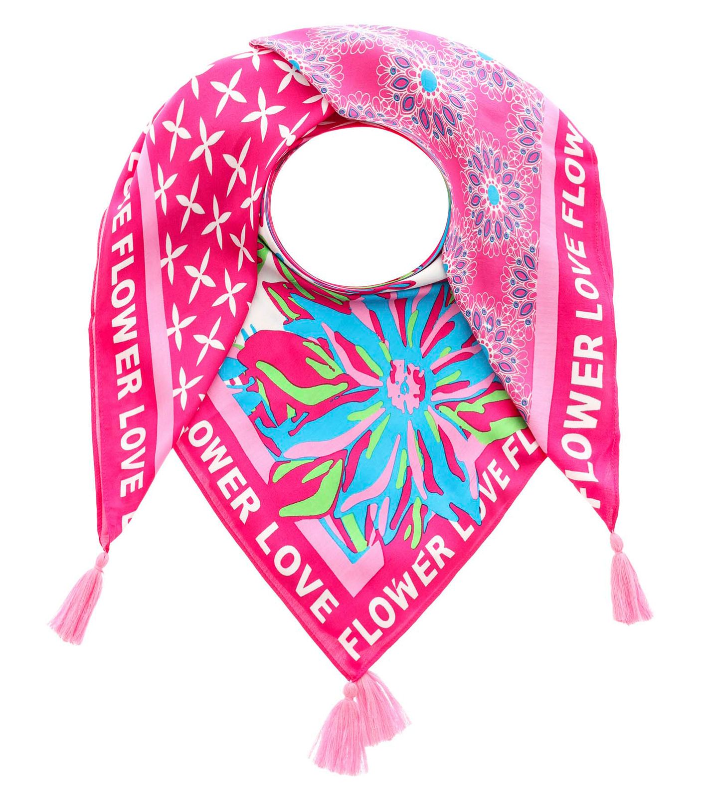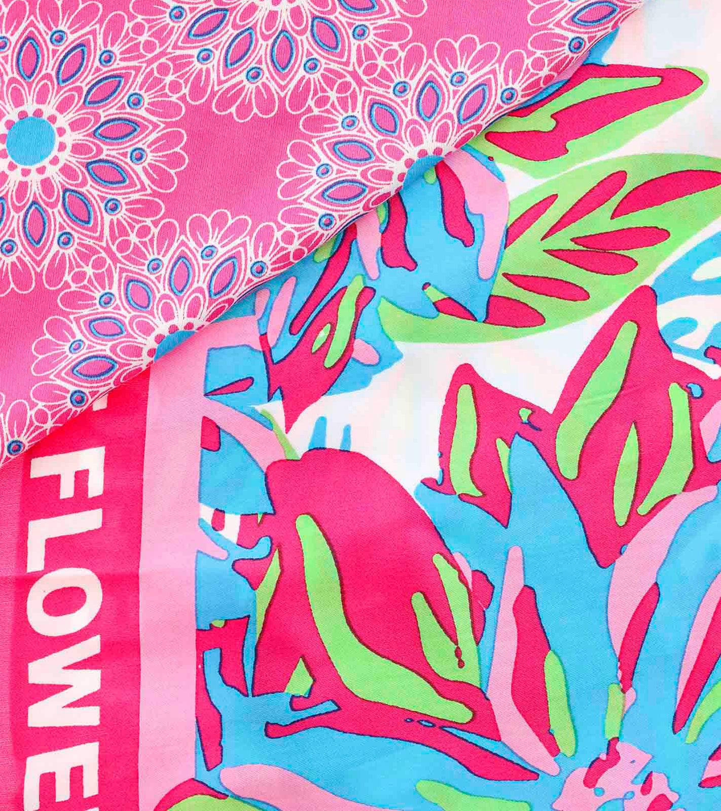 ZWILLINGSHERZ Vierecks-Tuch mit Blumen und Statement-Schriftzug Mode-Tuch 3016Q-2907 Pink/Braun, Pink/Türkis oder Pink/Orange